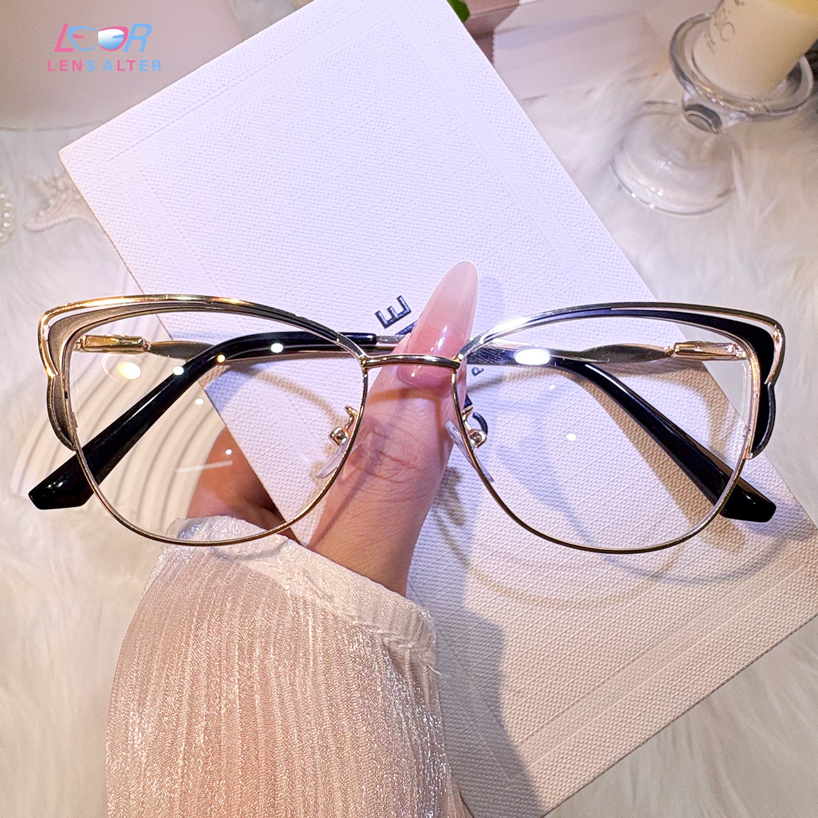 Setzen Sie ein starkes Style-Statement mit der schicken Cat-Eye-Brille von Lensalter. Bekannt für ihre zeitlose, schmeichelhafte Form, werten Cat-Eye-Brillen jeden Look mit einer perfekten Mischung aus Vintage-Charme und moderner Eleganz auf. Ob Sie sich für einen besonderen Anlass schick machen oder Ihrem Alltagsoutfit Flair verleihen – Cat-Eye-Brillen verleihen einen einzigartigen und selbstbewussten Look, der zu verschiedenen Gesichtsformen passt. Diese Brillenfassungen sind sowohl komfortabel als auch stilvoll und lassen sich nahtlos mit hochwertigen Korrekturgläsern kombinieren. So sorgen sie für klare Sicht und ganztägigen Tragekomfort. Werten Sie Ihren Stil mit der ikonischen Cat-Eye-Silhouette von Lensalter auf.