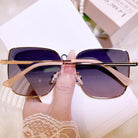 A contemporary masterpiece in metallic harmony, these geometric sunglasses blend deep amethyst with radiant gold accents. The minimalist metal construction ensures lightweight durability while the rich color combination evokes a sense of modern royalty—perfect for the discerning wearer who believes everyday elegance should be nothing less than extraordinary.