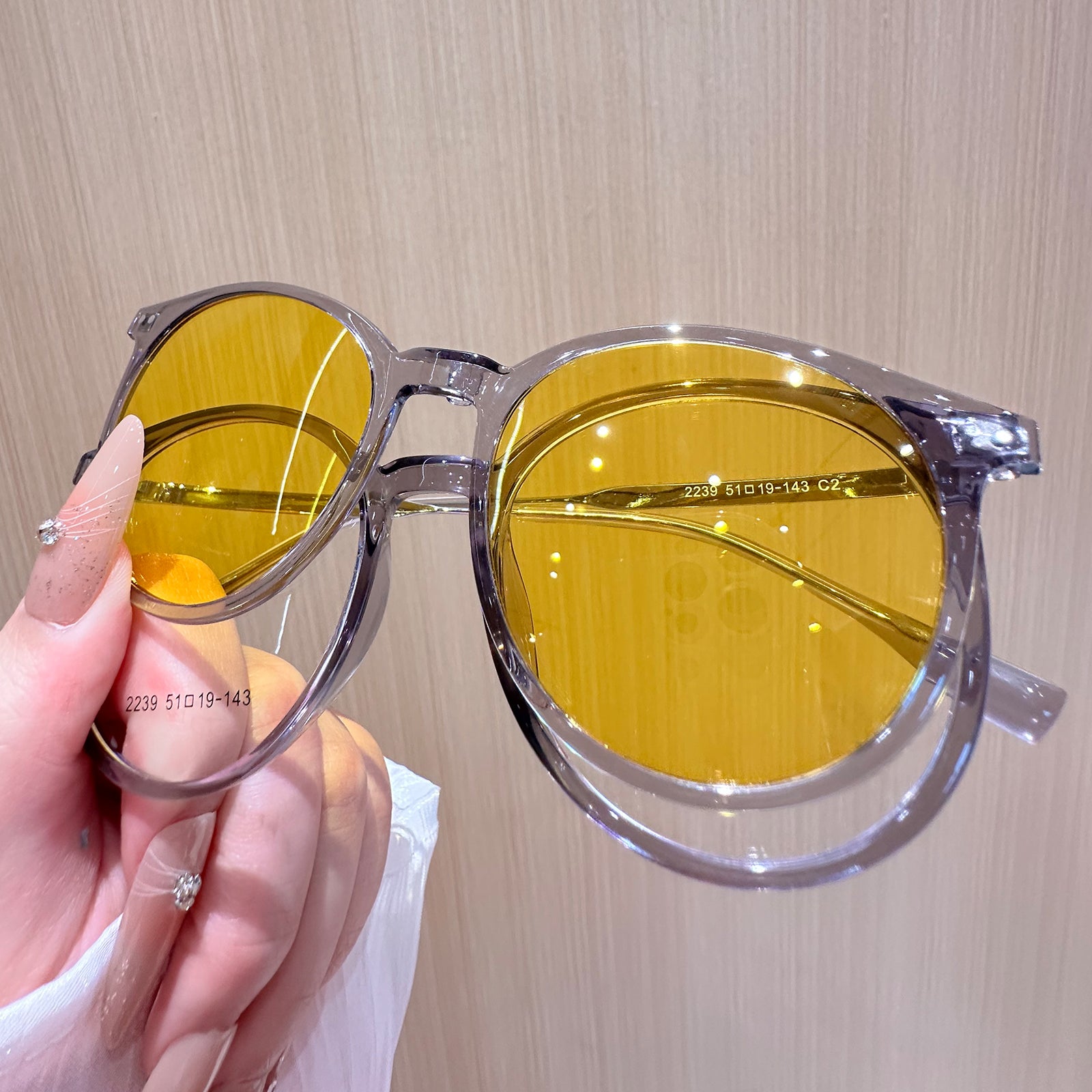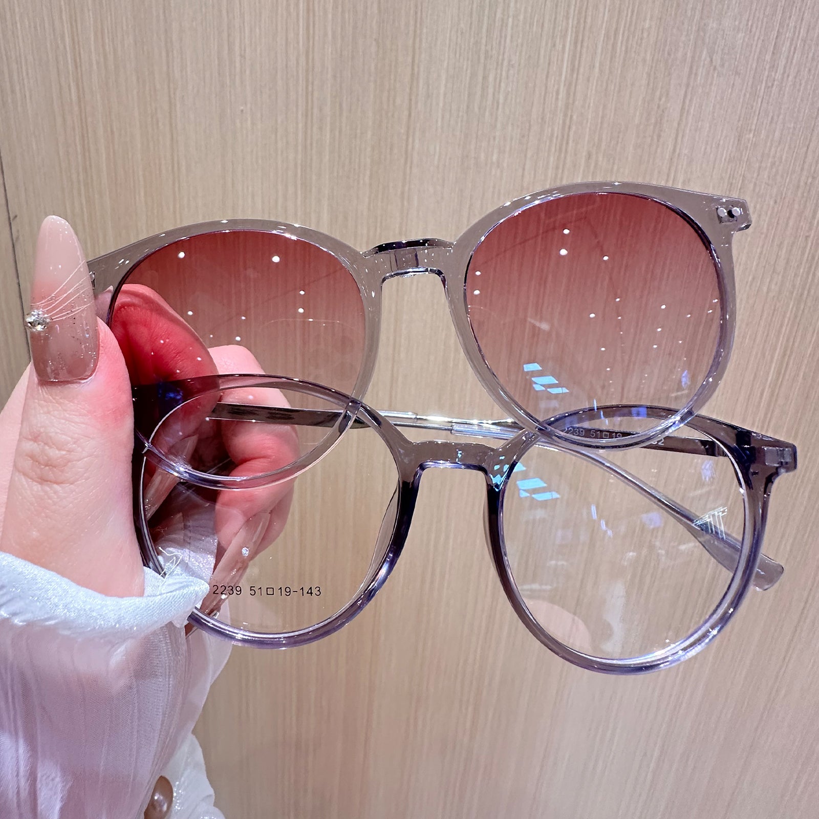 Entdecken Sie die alltägliche Eleganz mit dieser Rundrahmen-Sonnenbrille mit Clip-On, die aus haltbarem Acetatmaterial hergestellt wurden. Leicht und bequem sind sie perfekt für den täglichen Kleidung und verbessern mühelos jedes Outfit mit einer modernen Note. (Tipps: 1. Die polarisierte Funktion ist bereits im Magnet-Clip-On-Design enthalten. Wählen Sie also klare Objektive anstelle von Sonnenbrillen nach dem Schreiben Ihres Rezepts. 2. Diese Brille wird nicht empfohlen, wenn Sie Weitsichtigkeit oder Presbyopie haben. kann nicht vollständig passen, wenn Sie progressive Objektive wählen.)