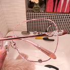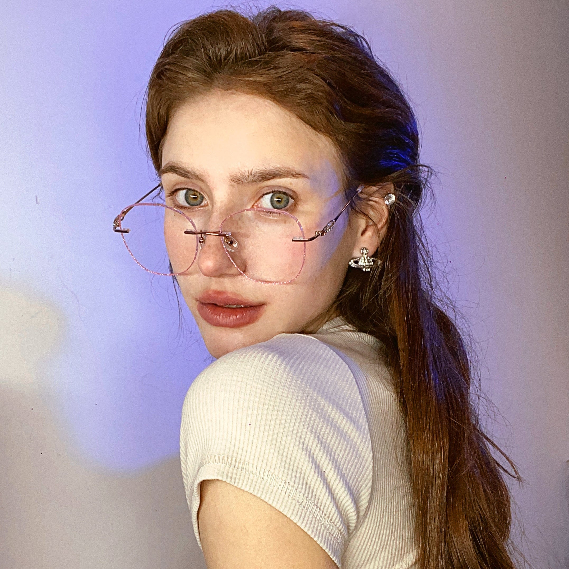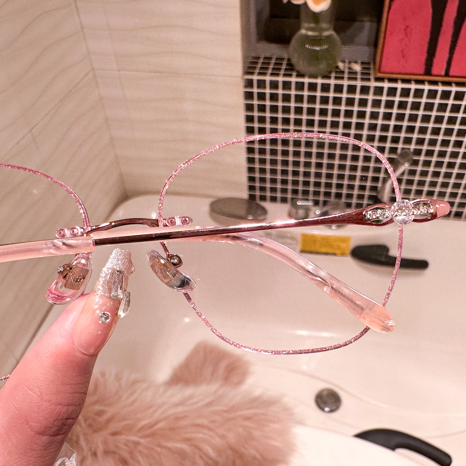 Bernsteinfreie Brille, geschmückt mit Diamanteinlagen und zeigt ein unverwechselbares, hohles Design. Erhöhen Sie Ihren Stil mit unvergleichlicher Eleganz und Komfort. Erleben Sie den Inbegriff des luxuriösen neu interpretierten.