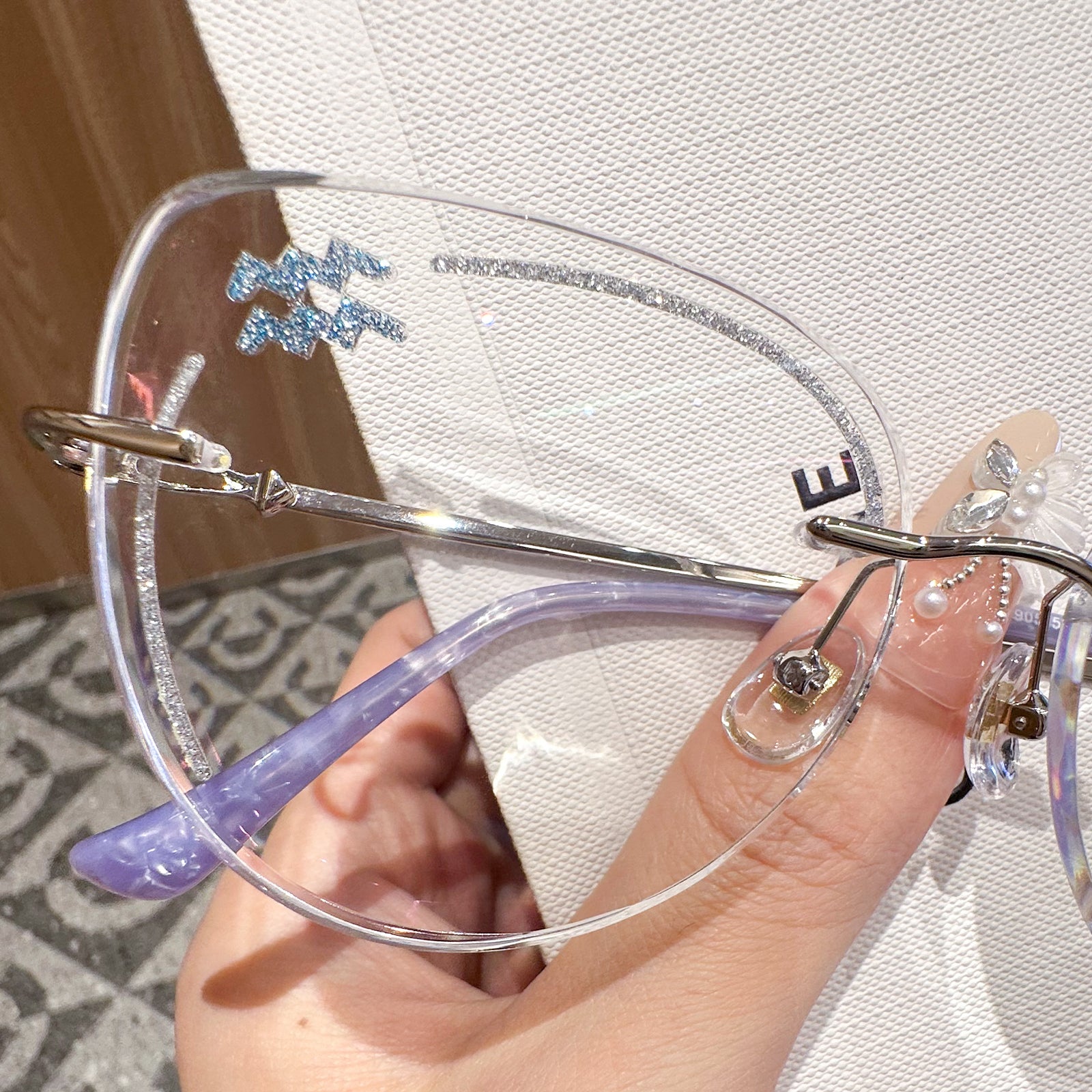 Innovative and independent, Aquarius is drawn to originality and progress. The Aquarius-inspired rimless glasses feature cool blue glitters on lenses and purple diamond details on the temples. Modern and artistic, they reflect the visionary nature of Aquarius.