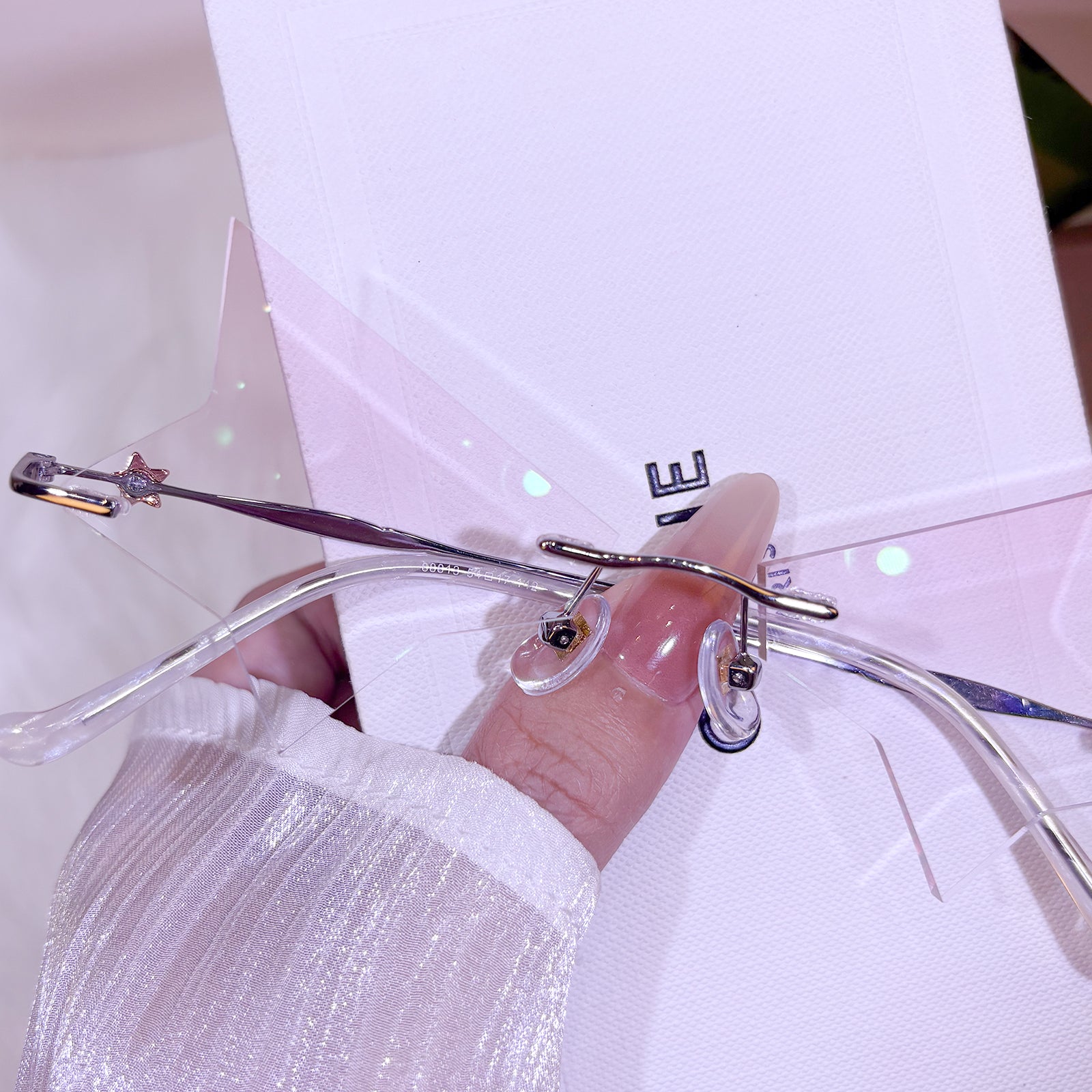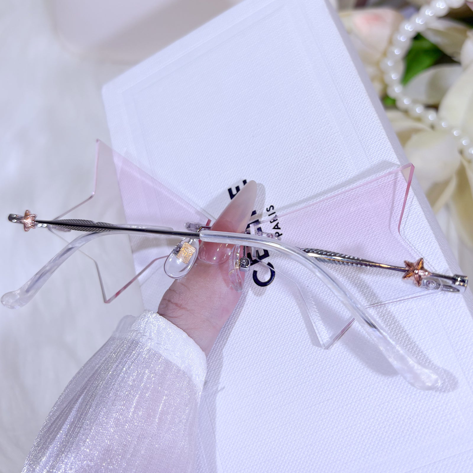 | Exclusive Design | These striking rimless glasses feature bold star-shaped lenses that instantly evoke the brilliance of a supernova. A tiny star detail on the sleek temples adds an extra touch of charm, making this design both playful and fashion-forward for anyone who dares to shine bright. [Tips: The images feature gradient-tinted lenses, while your prescription lenses will be clear]