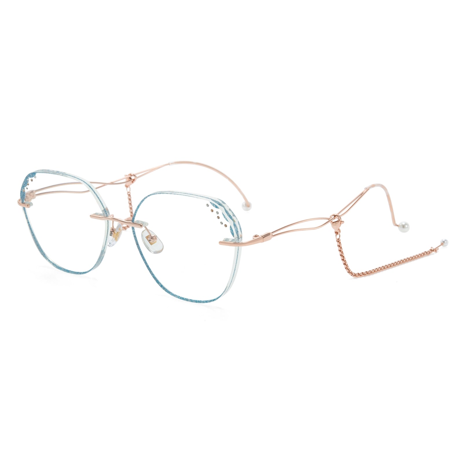 Aurora Stylish Britens verfügen über ein optimiertes, sich überschneidender Tempeldesign, das einen fesselnden Look schafft. Die Objektive sind mit diamant inspirierten Details für einen brillanten, schillernden Effekt akzentuiert. Tempelenden sind mit baumelnden Perlen geschmückt, und eine leichte, abnehmbare Kette ist für bequeme Verschleiß enthalten. Erhöhen Sie Ihren Stil mit Aurora Chic Brille!