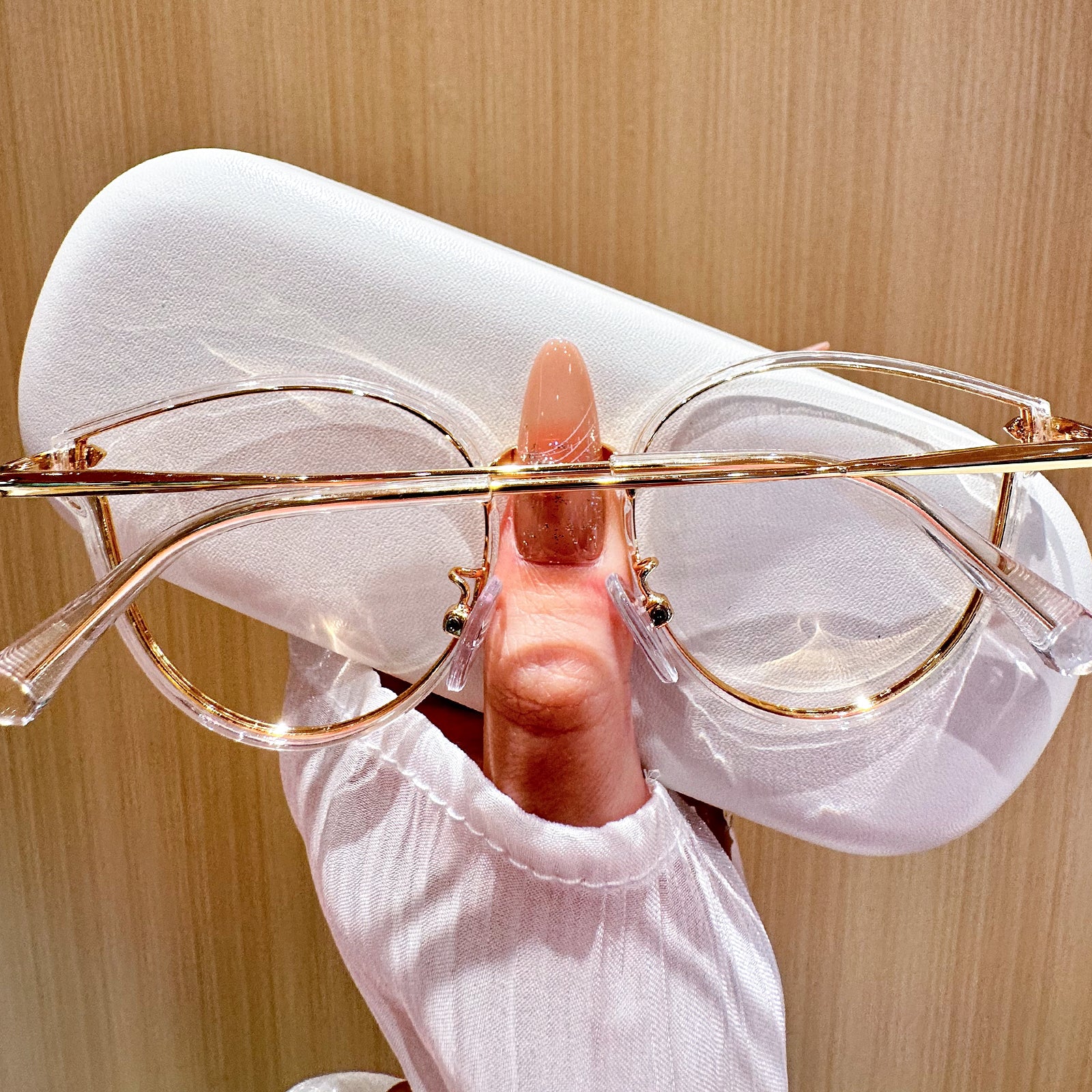 Diese entzückenden runden Katzenaugengläser kombinieren dank ihres eleganten, transparenten Designs einen spielerischen Stil mit einem Hauch von Eleganz. Die einzigartige Mischung aus einer Katzenaugeform und einer weichen runden Linsen schafft einen Look, der sowohl niedlich als auch raffiniert ist-perfekt, um jedem Outfit ein bisschen Charme hinzuzufügen.