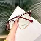 Red leopard-print half-rim metal glasses, the perfect blend of boldness and sophistication. Designed for the confident business lady, these frames add a touch of fierce elegance while maintaining a professional and polished look.