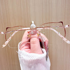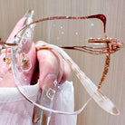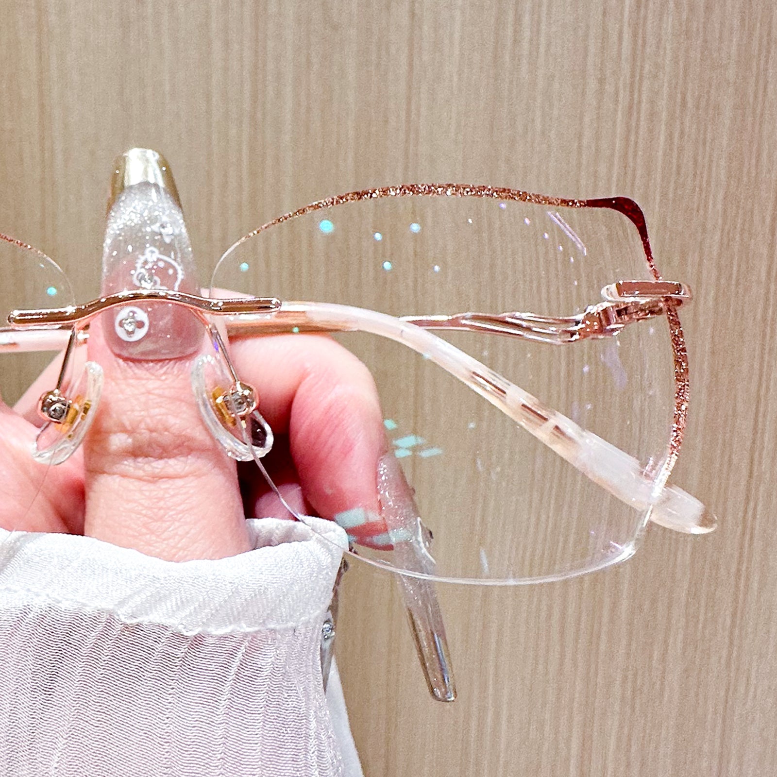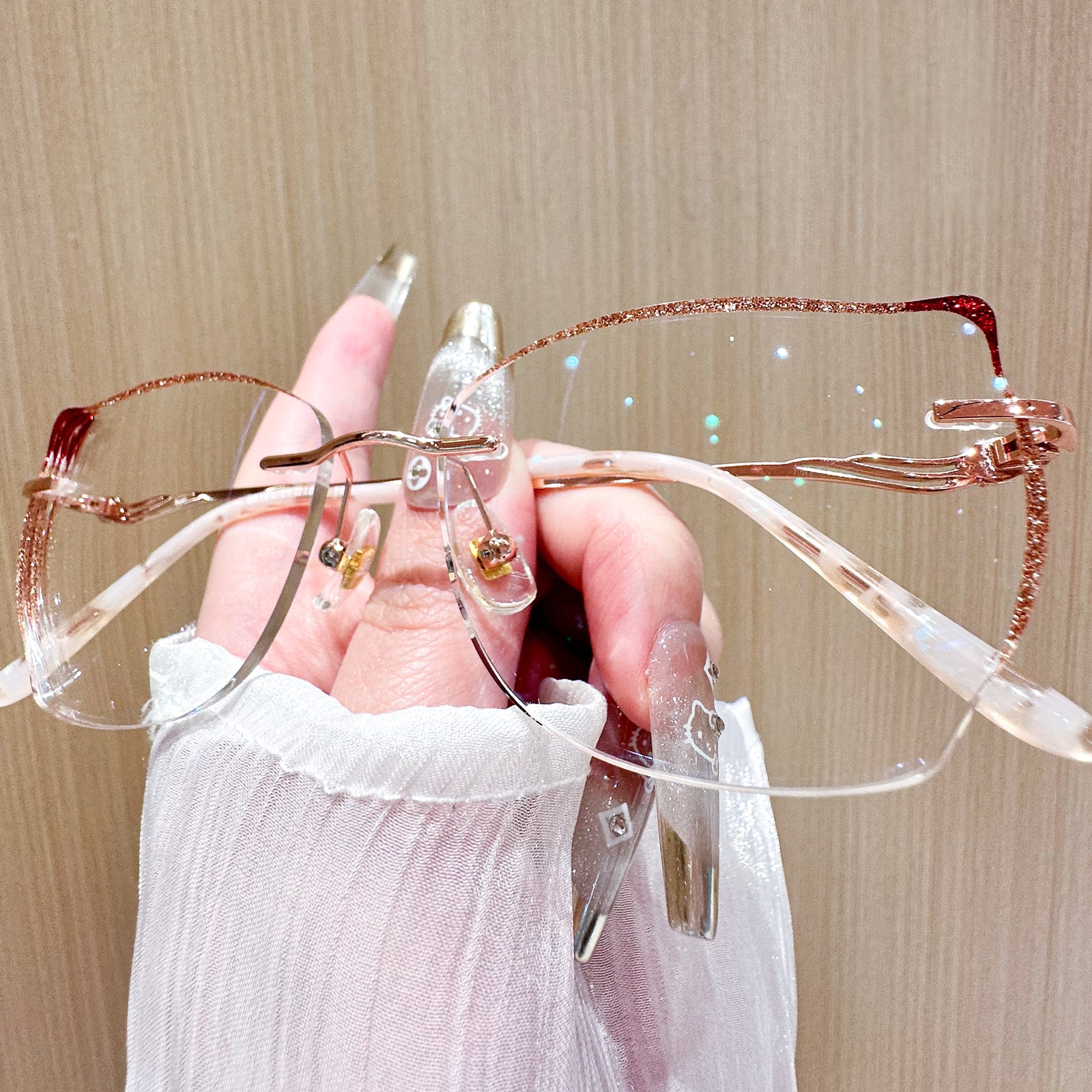 Blenden Sie in dieser Ferienzeit mit diesen atemberaubenden randlosen Katzenaugengläser, geschmückt mit schimmerndem Glitzer und einem Hauch von festlichen Farben. Das spielerische Kätzchen-inspirierte Design verleiht Charme, während das Glanz das Licht erfasst und jeden Blick unvergesslich macht. Diese Brille ist perfekt für Winterfeierlichkeiten oder alltägliche Magie und ist Ihr Muss, um hell zu leuchten und Freude zu verbreiten.