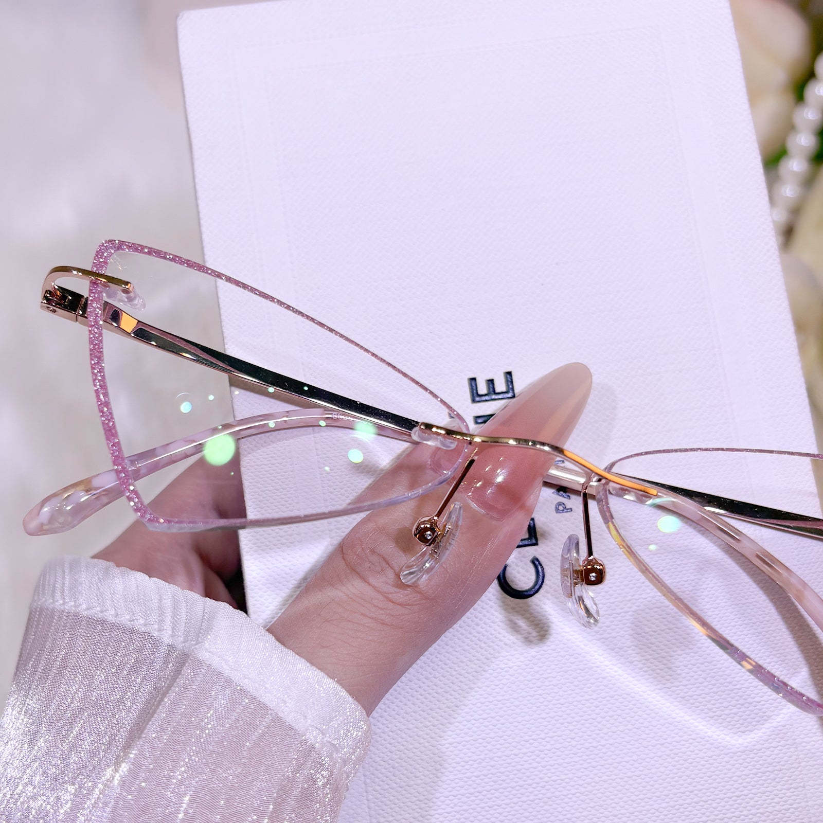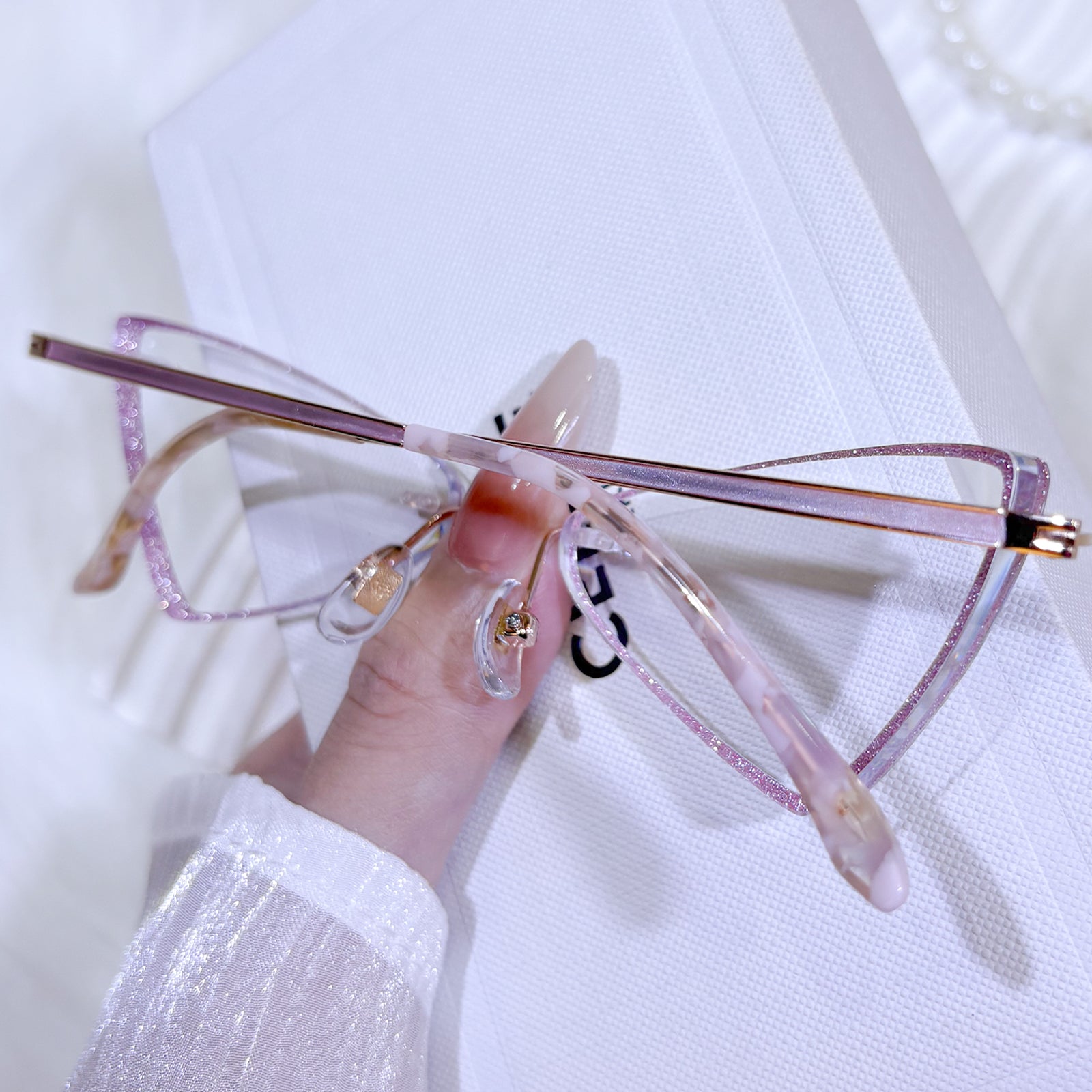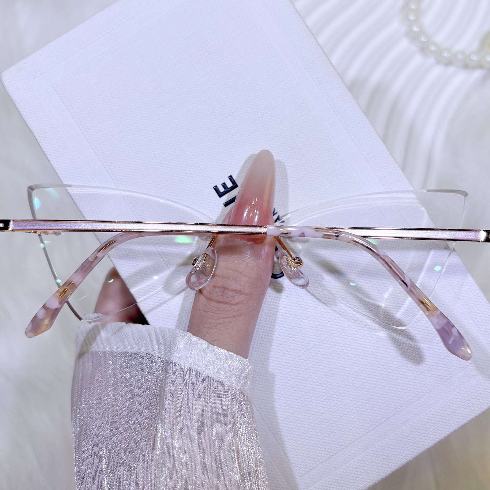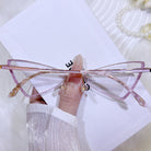 | Exclusive Design | These rimless glasses feature an asymmetrical slanted triangle shape, making them a true standout with an avant-garde flair. The uniquely structured lenses are paired with ornate, polished temples that add a luxurious and fashionable finish—perfect for trendsetters who embrace bold, artistic design.