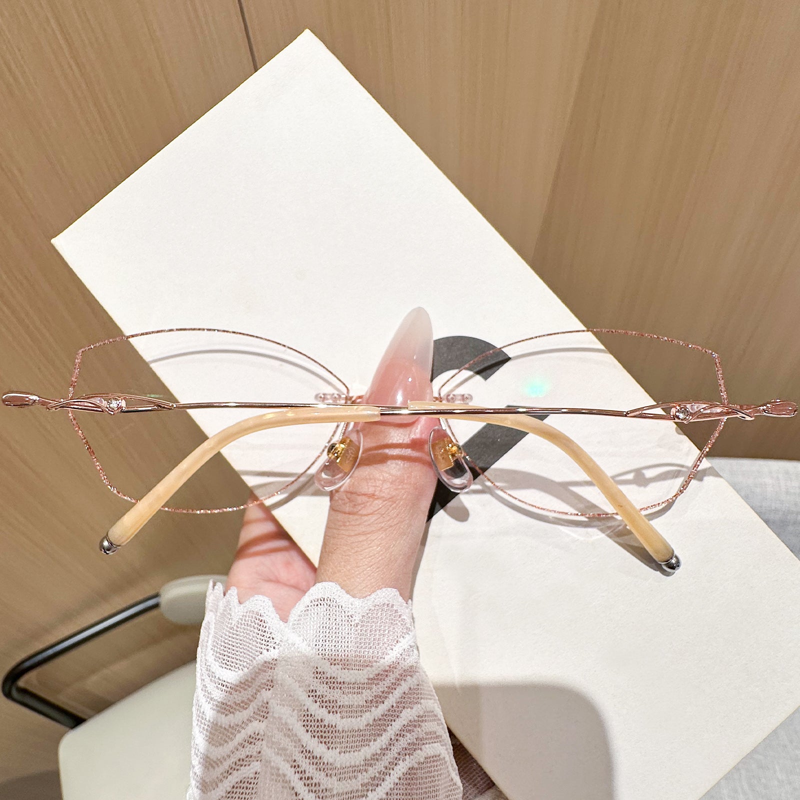 Die Giselle -Brillen verfügen über Linsen, die mit exquisitem Goldfiligran und Tempeln, die mit funkelnden Diamanten geschmückt sind, in einem strahlenden Goldton ausgestattet sind. Das Design kombiniert Eleganz mit einem Hauch von Luxus und macht es zum perfekten Accessoire für einen raffinierten und glamourösen Look.