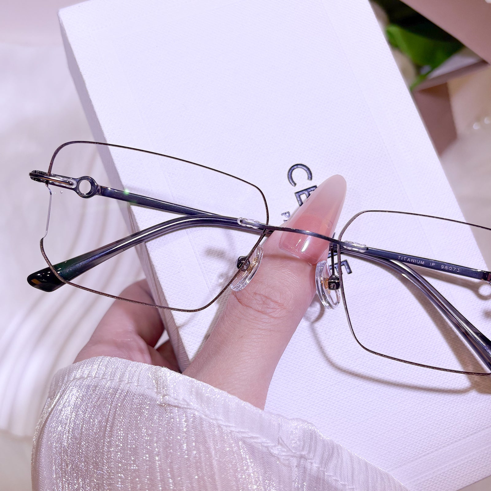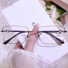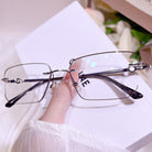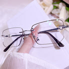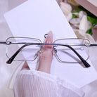 These sleek black rimless glasses are the epitome of understated cool. With a gender-neutral design that exudes modern minimalism, they offer a sharp and intelligent aesthetic. The lightweight titanium temples ensure all-day comfort without sacrificing strength, making them perfect for those who value both style and substance.