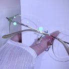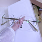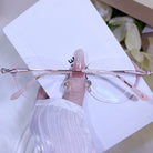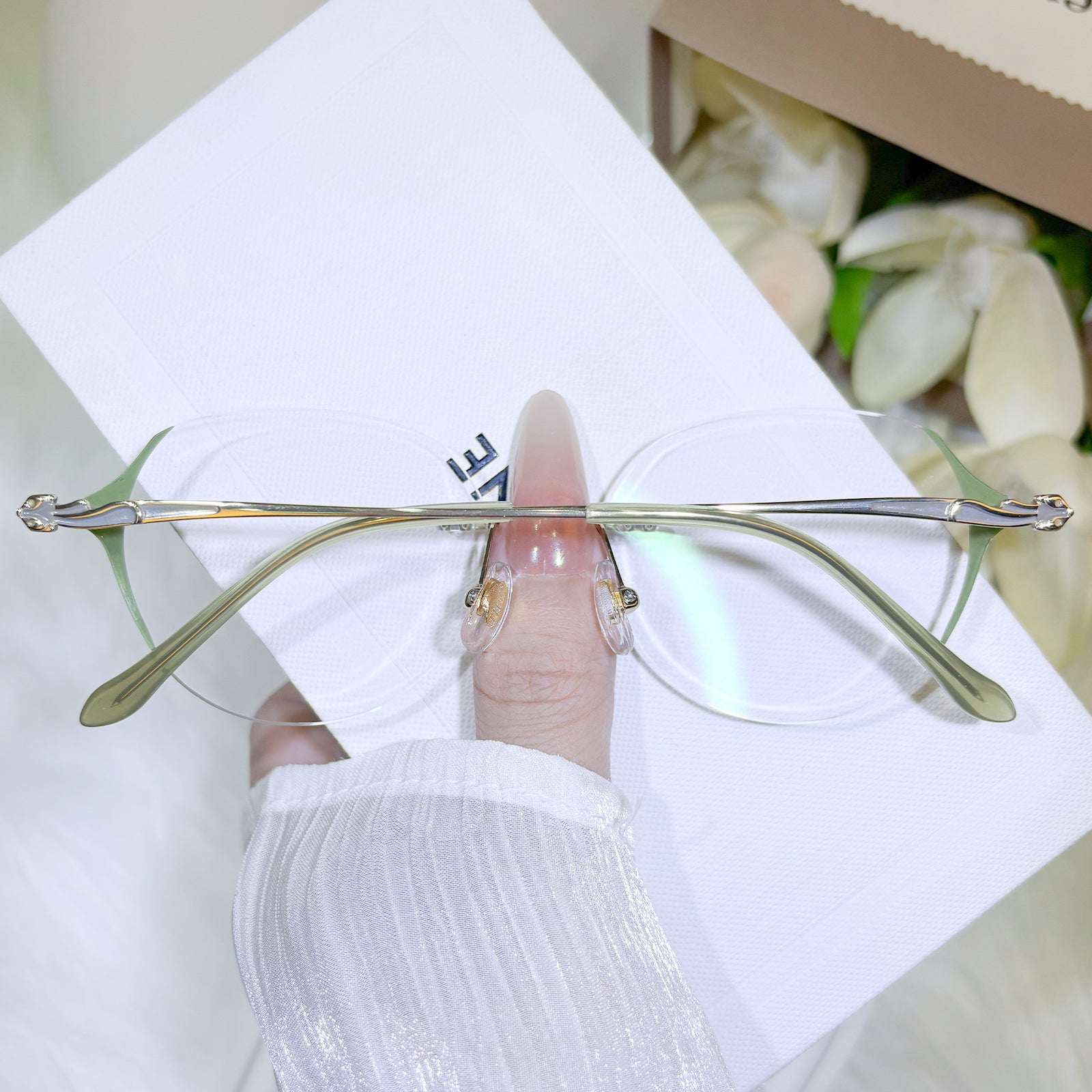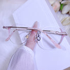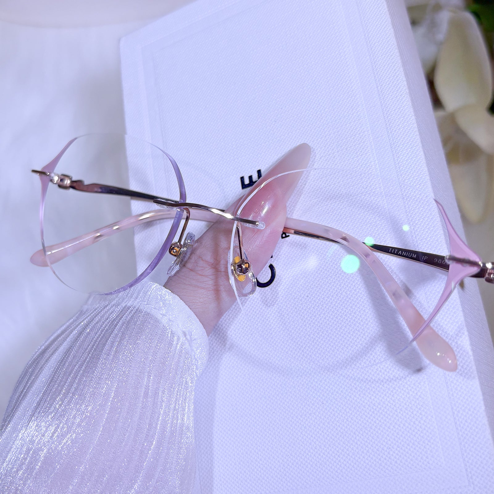 Where light meets color in a frameless form, these pink and green rimless glasses paint the world with soft clarity. The titanium material ensures an invisible comfort, while the translucent hues evoke a dreamy, modern freshness—for the poetic wearer who finds beauty in gentle contrasts and sunlit moments.