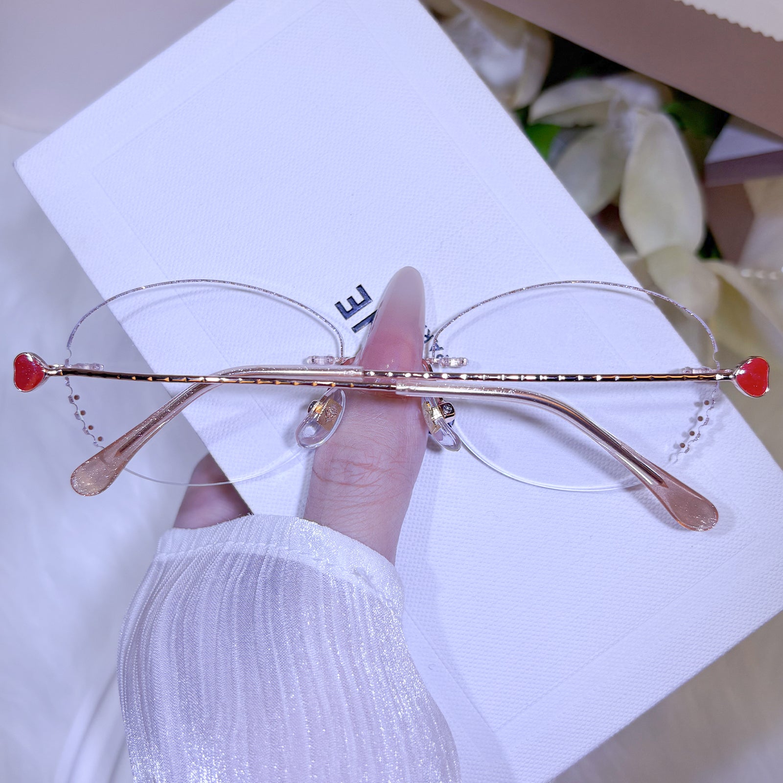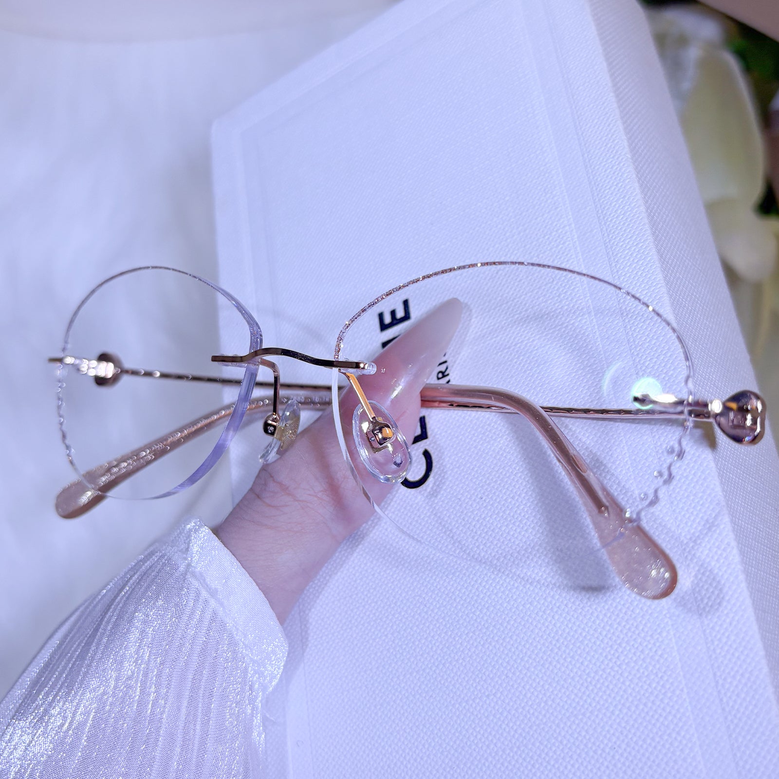 Barely-there elegance, brilliantly realized. This gold metal frame celebrates refined simplicity through its precise craftsmanship and luminous finish. The frameless design offers effortless wearability while creating a subtle halo of light around the face—for the woman who understands that true luxury speaks in whispers.