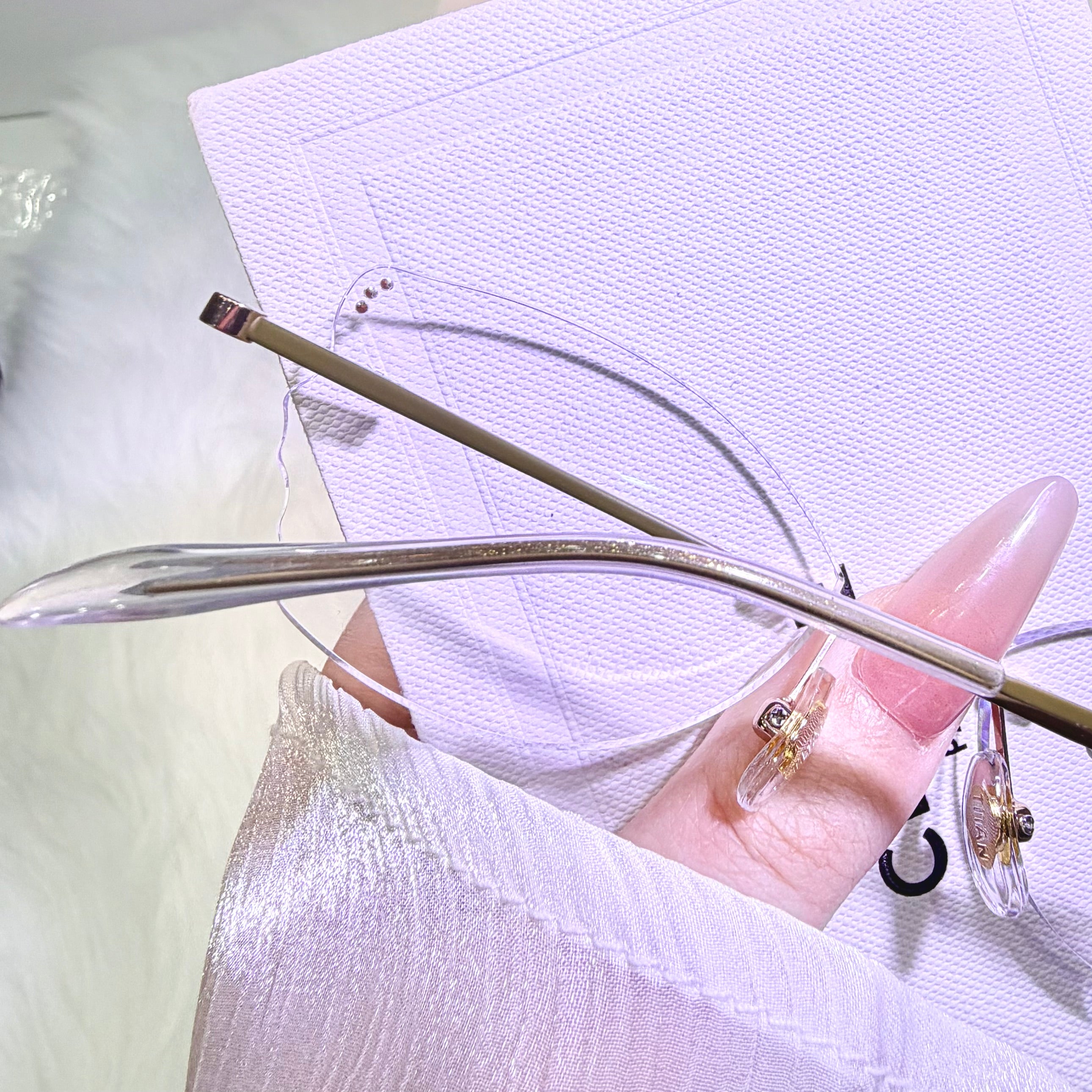 These enchanting rimless glasses feature lens shapes inspired by butterfly wings, complete with transparent lenses adorned with sparkling crystals. Crafted from titanium, they’re lightweight, graceful, and beautifully magical.