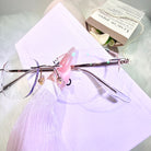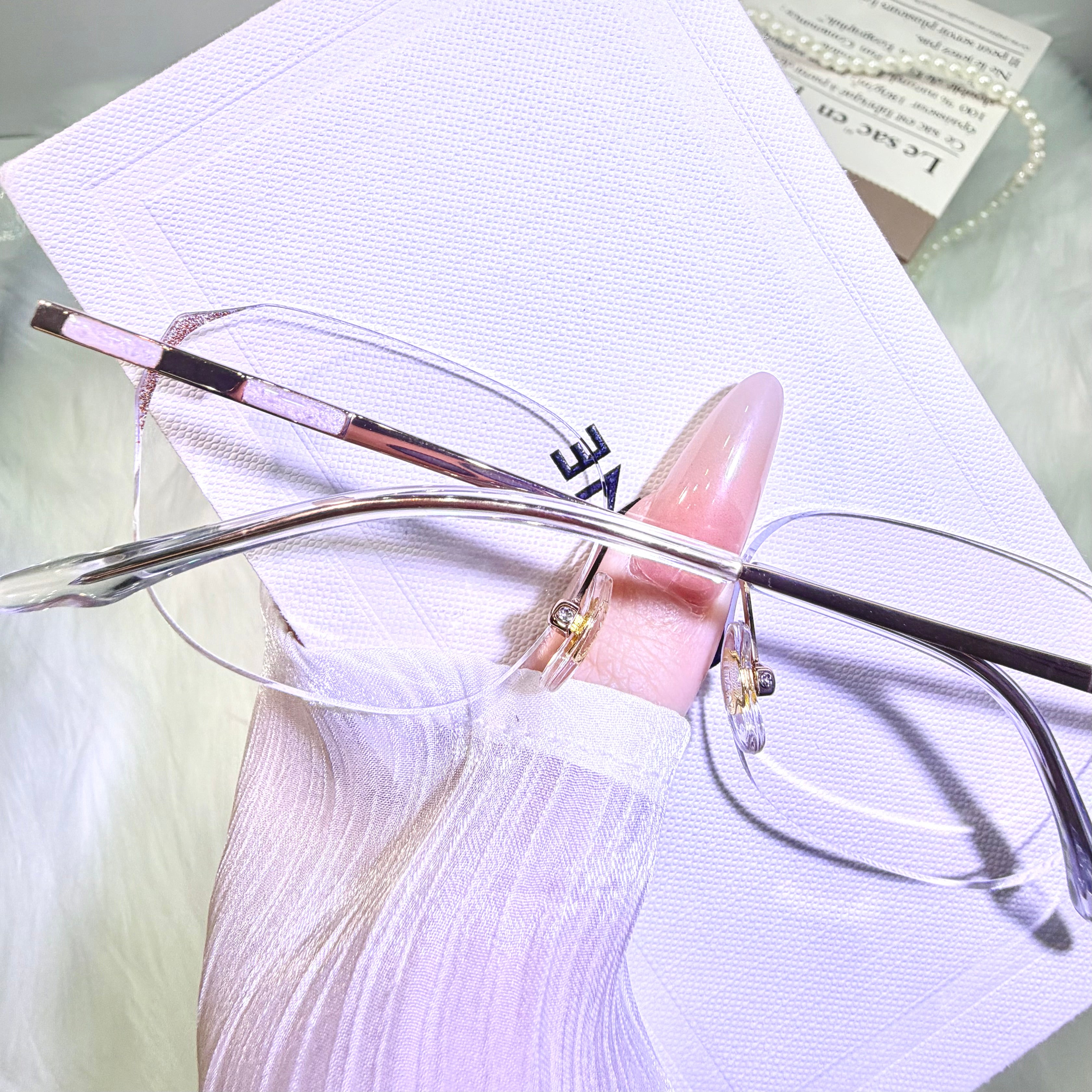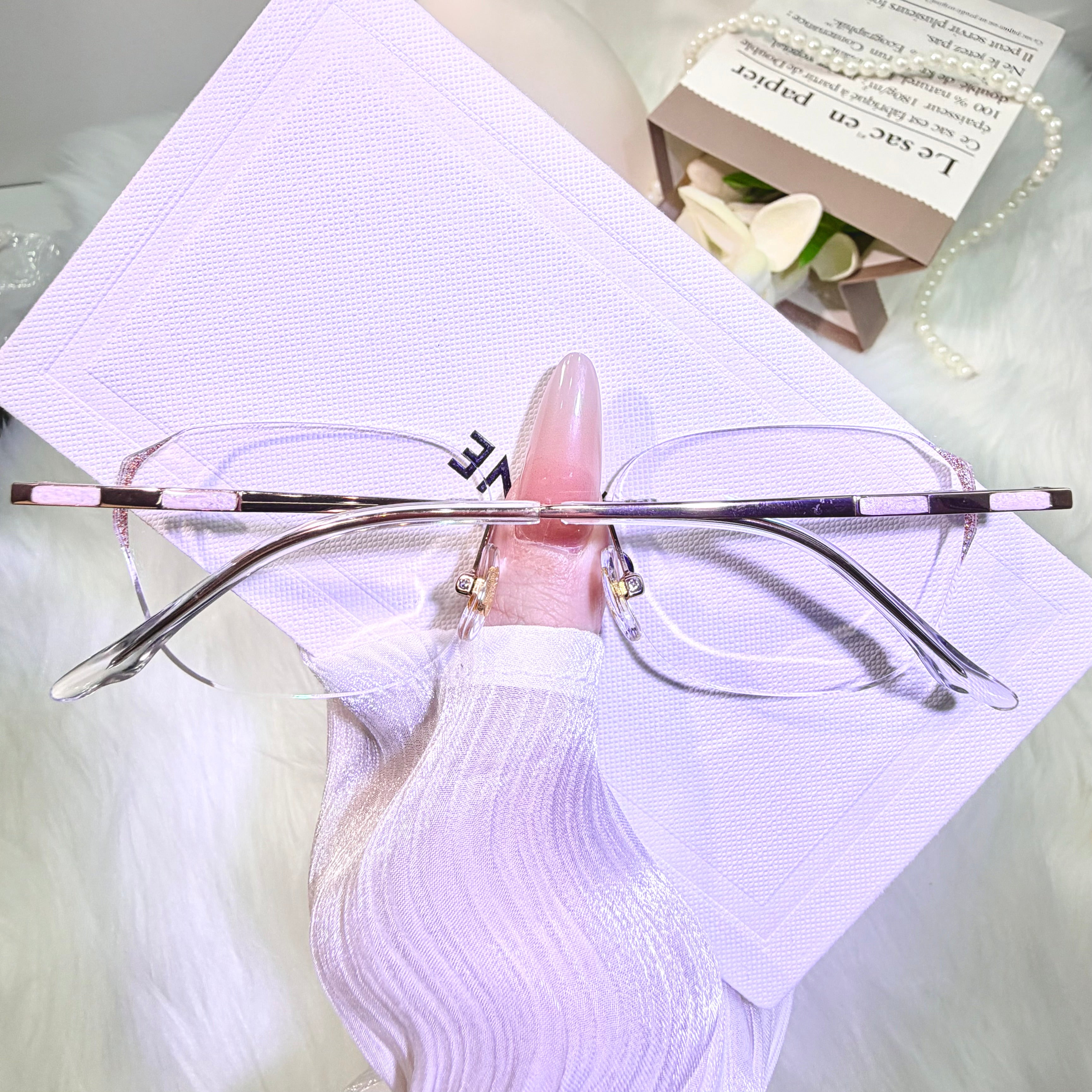 Crafted from premium titanium, these rimless glasses feature lenses dusted with delicate glitter for a soft, classic sparkle. Elegant, lightweight, and timeless — perfect for women who love understated beauty.