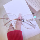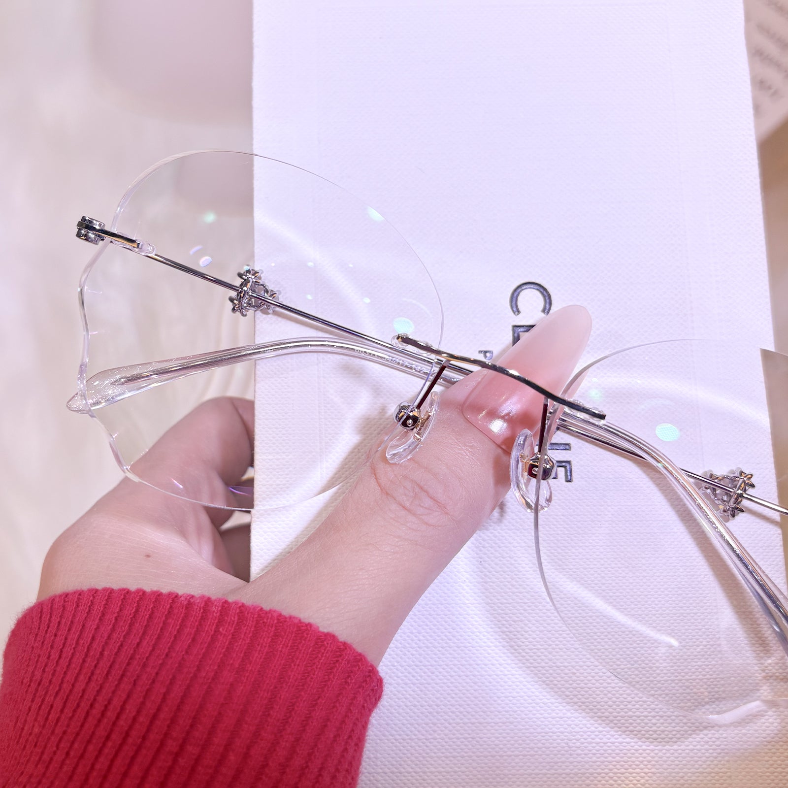 | Exclusive Design | This beautifully crafted rimless eyewear features an irresistibly cute and uniquely shaped lens design, making it stand out at first glance. The temples are adorned with delicate, refined decorations that add an extra touch of charm and elegance. A perfect blend of playful and sophisticated style.