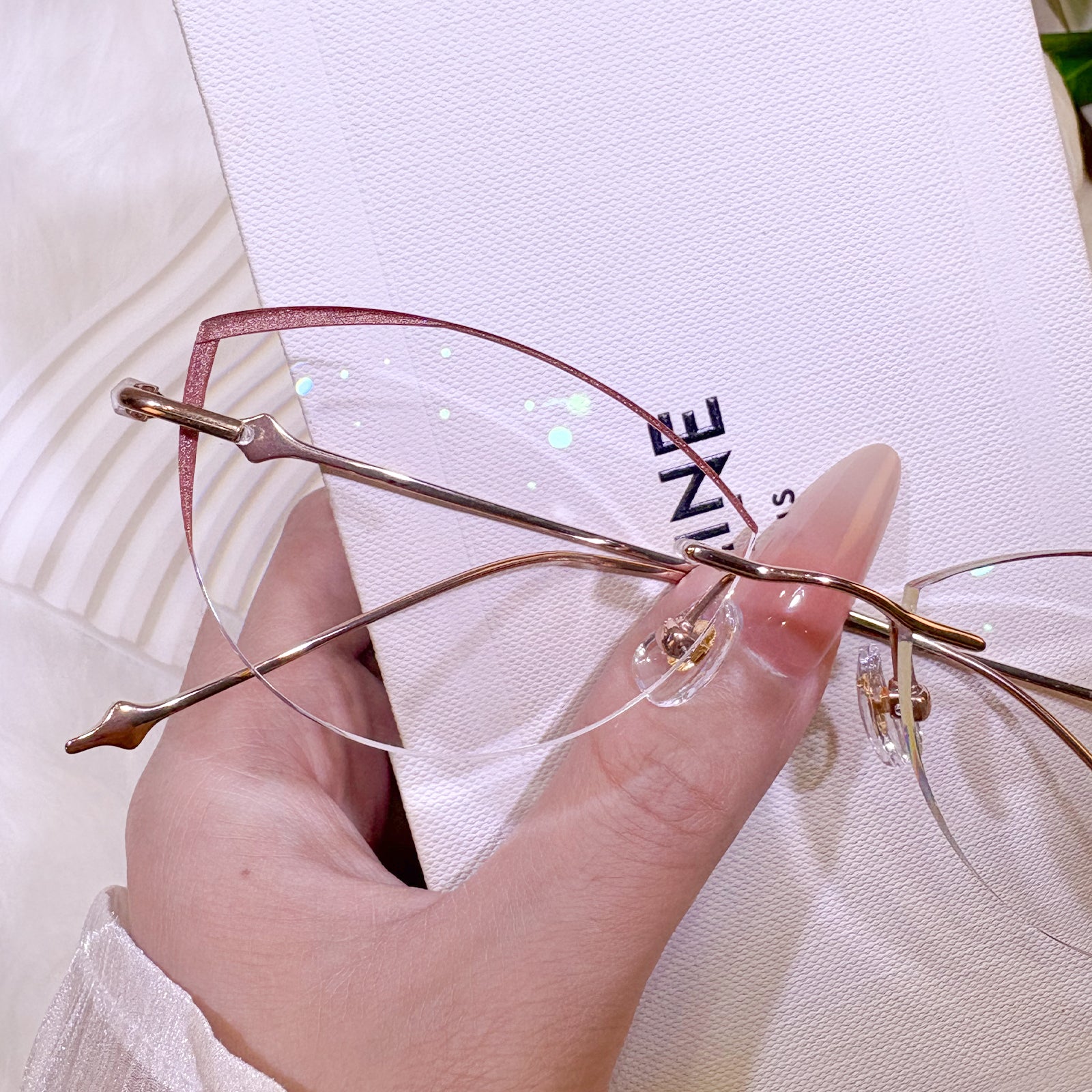| Exclusive Design | These petite rimless cat-eye glasses are the epitome of fashion—delicate, elegant, and effortlessly stylish. The uniquely crafted titanium temples add a sophisticated flair, making them a chic accessory for any refined wardrobe.