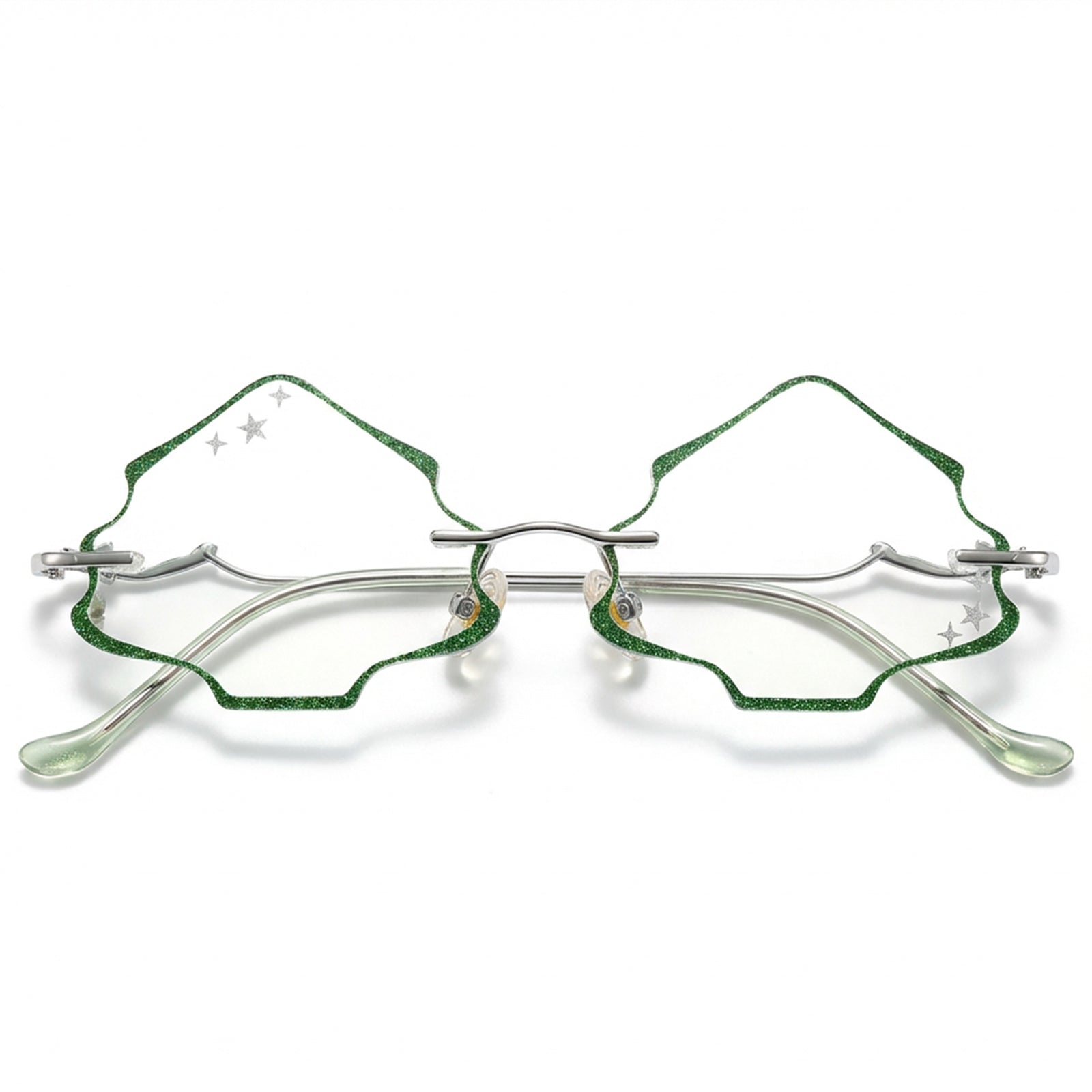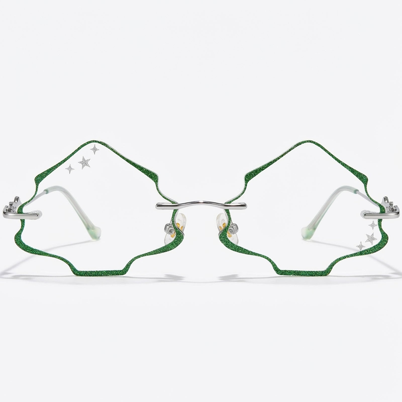| Exclusive Design | These Christmas-tree–shaped rimless glasses are bursting with festive charm, featuring glitter-lined edges that shimmer like holiday lights. Tiny star accents sparkle across the lenses, adding a magical touch that instantly boosts the Christmas vibe. Fun, cheerful, and full of seasonal spirit—perfect for celebrating in style.
