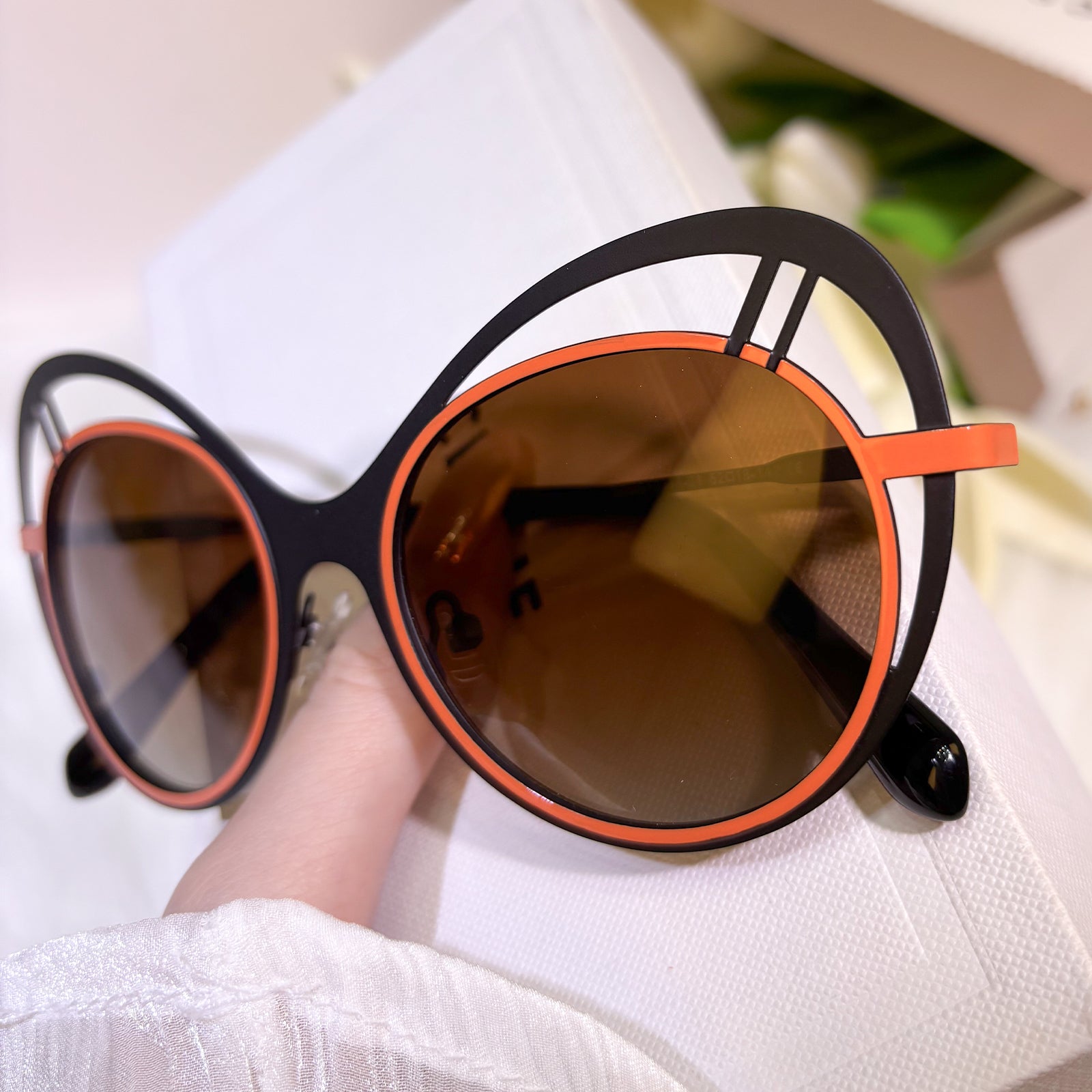 These quirky matte-finish sunglasses feature an eccentric shape that’s sure to turn heads. Bold, playful, and full of personality, they’re the perfect accessory for making a statement and showing off your unique style.