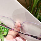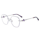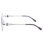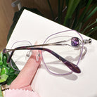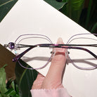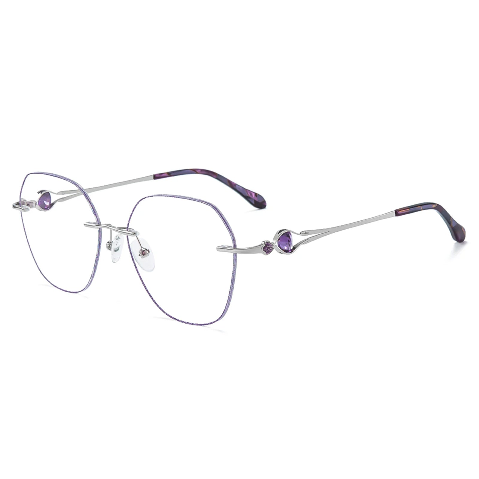 Schillernde Brillen mit Objektiven mit exquisiten lila goldenen Kanten und Tempeln, die mit großen, atemberaubenden Diamanten geschmückt sind. Die Tempel zeigen einen kristallklaren lila Farbton und verleihen einen Hauch von Brillanz und moderner Eleganz. Perfekt für diejenigen, die gerne glänzen, kombinieren luxuriöse Details mit einem schicken, zeitgemäßen Design.
