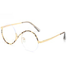 Runder Metall -Halbrahmen, ein gewages Statement -Stück für diejenigen, die es wagen, anders zu sein. Mit seiner unkonventionellen Form strahlt dieser Brillen ein Gefühl der kantigen Raffinesse aus. Der schlanke Metallrahmen wird mit Präzision und Liebe zum Detail gefertigt und verleiht jedem Look einen Hauch von Moderne.
