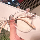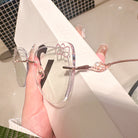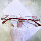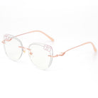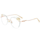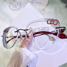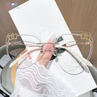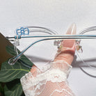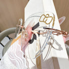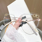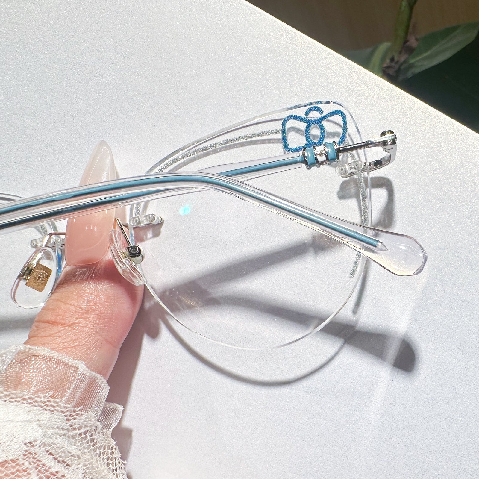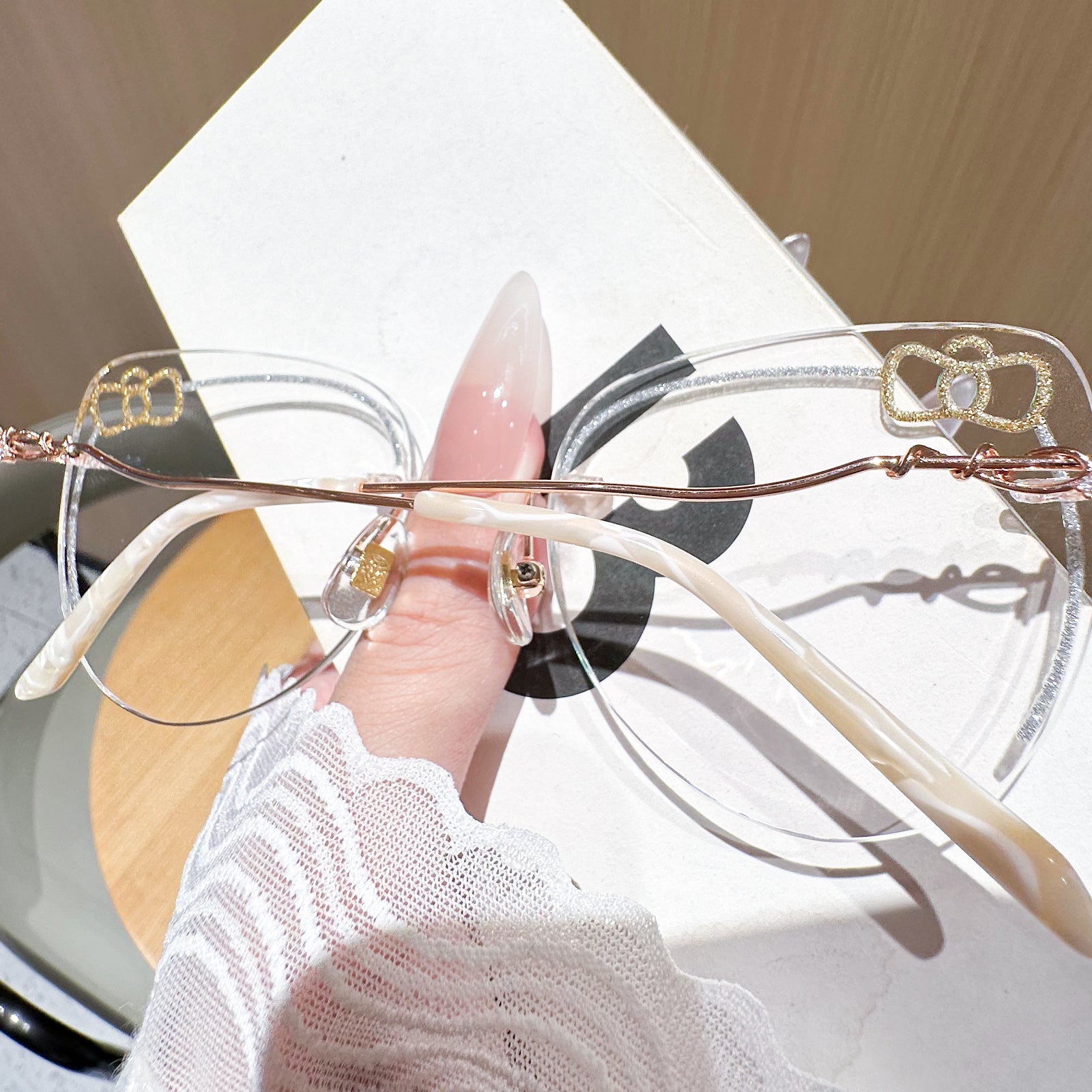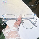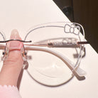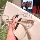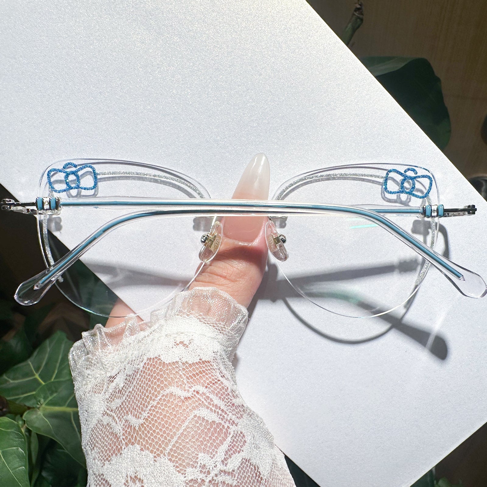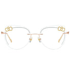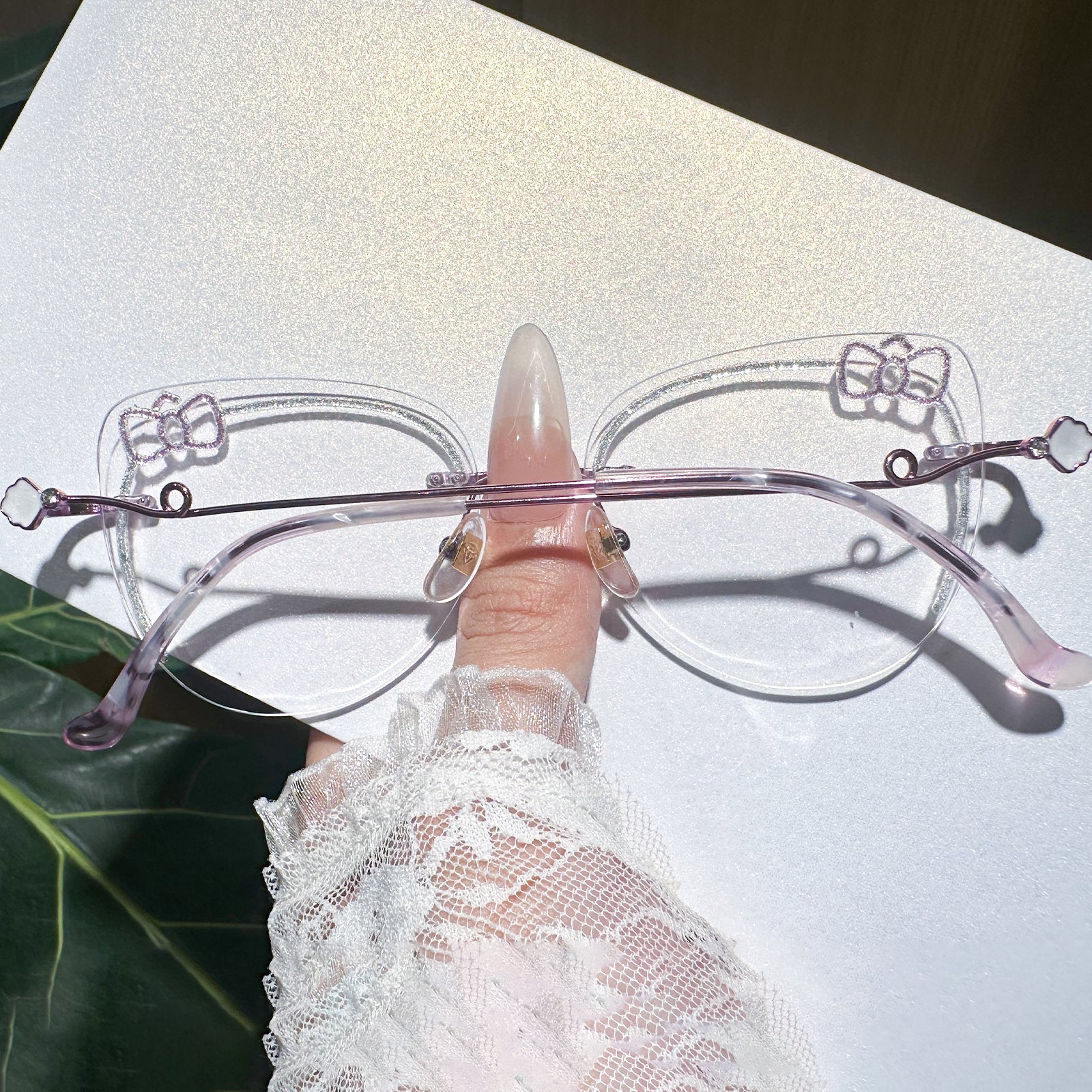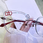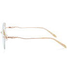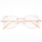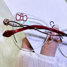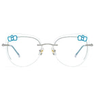 Kitty ist breite Brillen in Rossengolden und Rosa, die aus hochwertigem Metall mit entzückenden Kitty-Bögen und silbernen Glitzern hergestellt wurde. Verwenden Sie die entzückende Kollision von Cartoon und Sheen, um Ihre innere Unschuld zu zeigen.