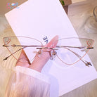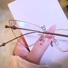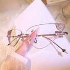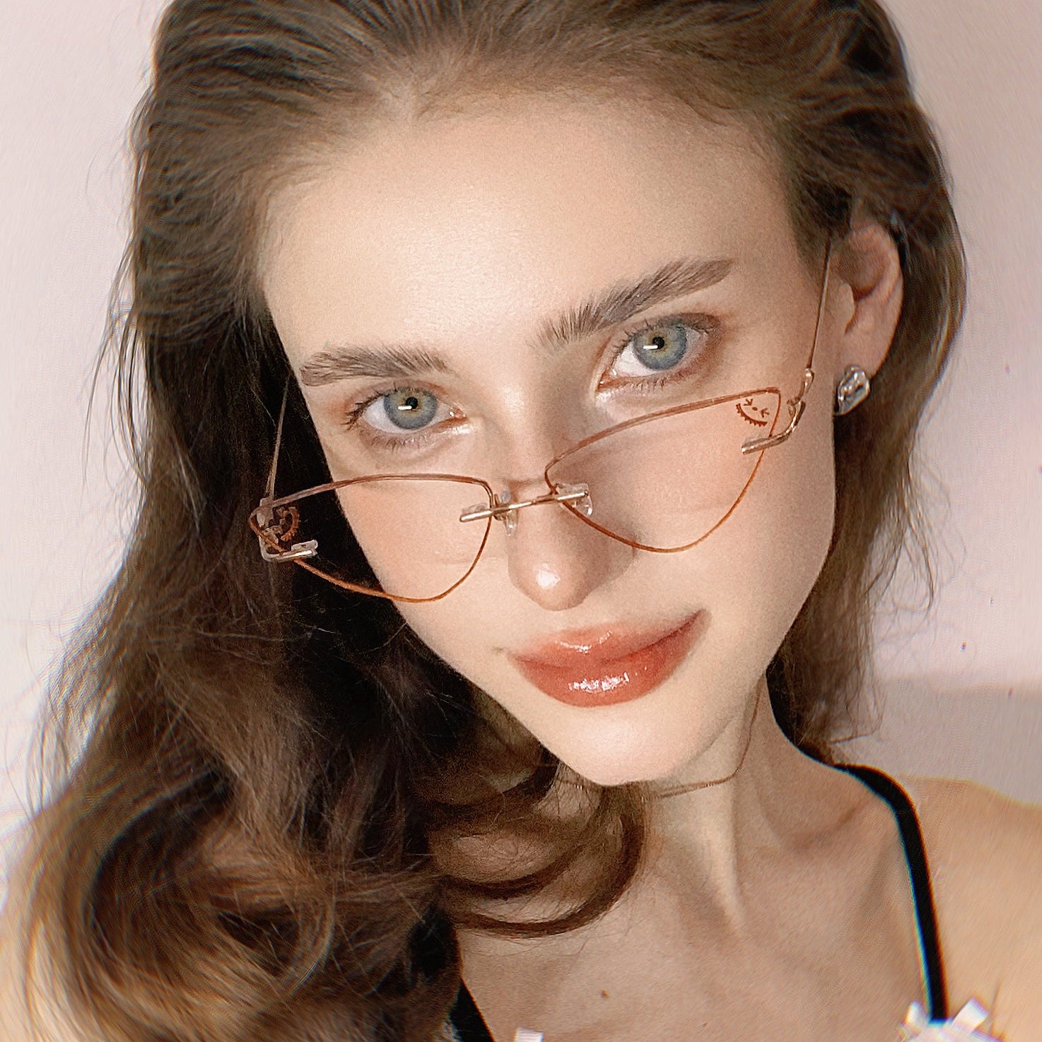 | Exclusive Design | Inspired by the playful charm of the most popular character, these rimless glasses bring a smile to your look—literally. The lenses feature adorable smiley face accents wrapped in fine glitter, adding a joyful sparkle with every angle. Featherlight titanium temples ensure lasting comfort while complementing the whimsical design. Perfect for those who love fun, fashion, and effortless flair.