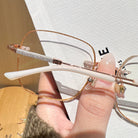 Trendy Frameless Eyewear - befreien Ihren Blick nach grenzenloser Reiz. Befreien Sie sich Ihren Charme mit einem Design, das Ihre Augen frei macht. Sprudelnde Sterne schmücken die Tempel und verleihen einen Hauch von Brillanz.