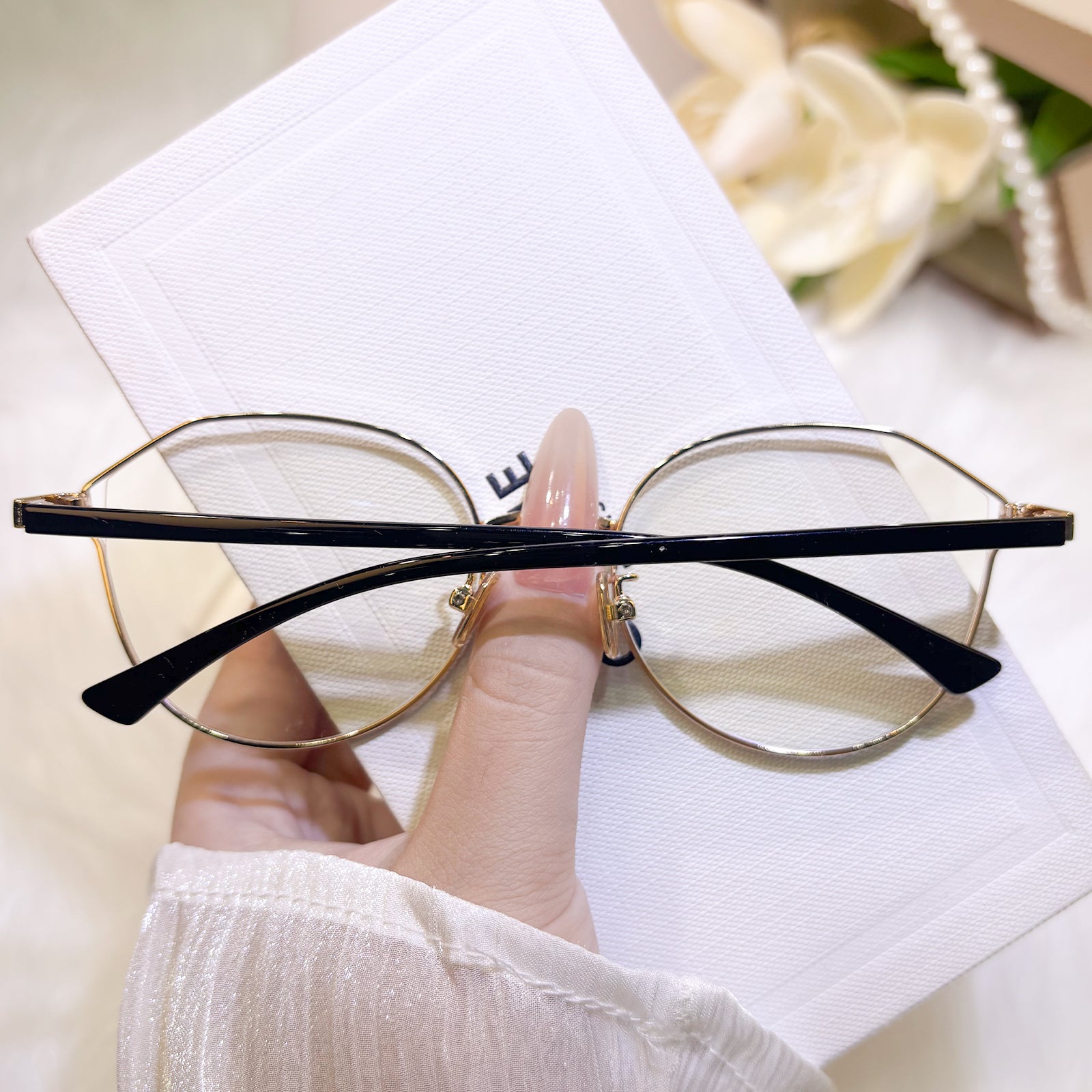 Crafted from lightweight TR material, these cat-eye glasses for women blend timeless silhouette with contemporary comfort. The gently upswept corners frame the face with soft elegance, offering a versatile accessory that transitions seamlessly from professional settings to casual occasions. Perfect for those who appreciate understated femininity in everyday wear.