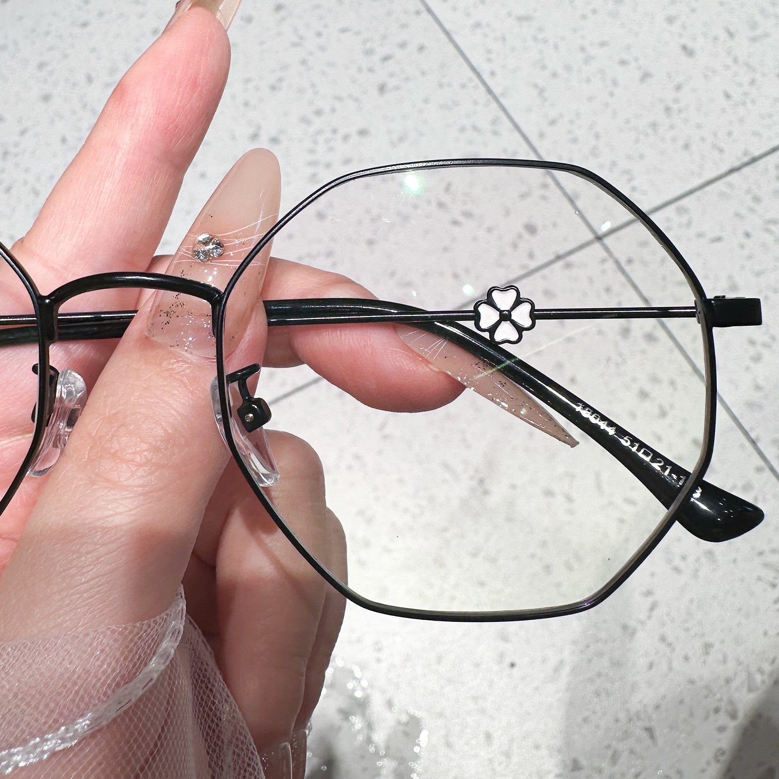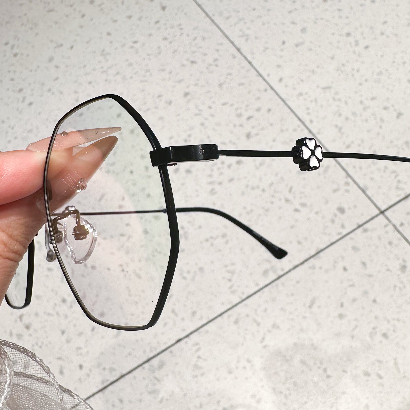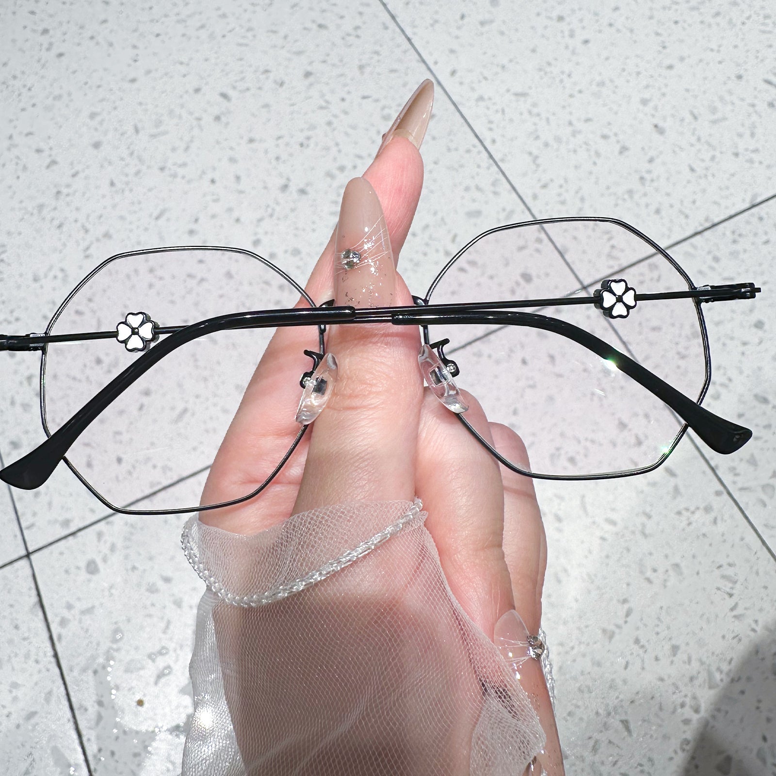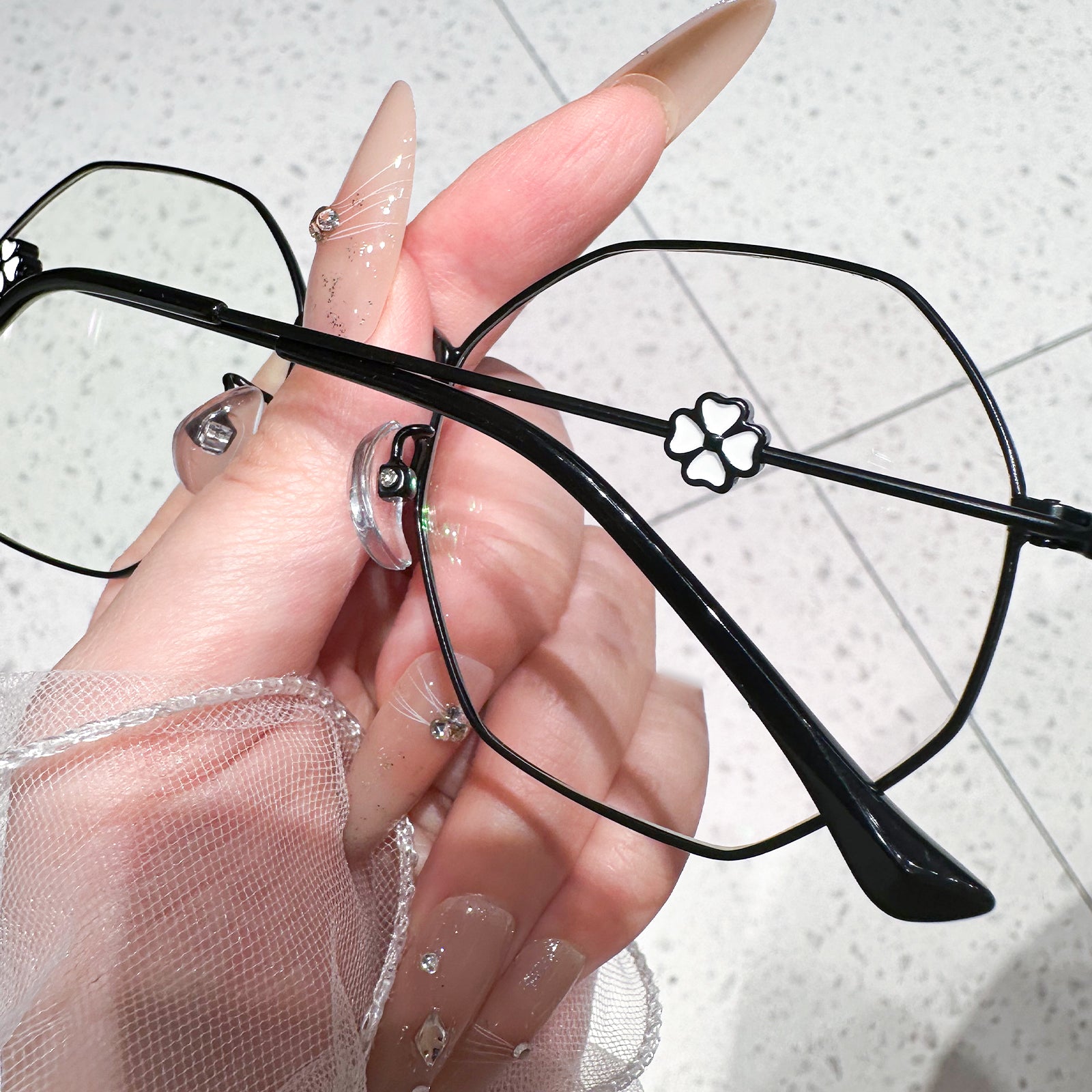 Fügen Sie Ihrem Look einen Hauch von Glück mit unseren geometrischen Brillen mit einem skurrilen Vierblattklee-Design auf den Schläfen hinzu. Diese Brille mischt moderne geometrische Formen mit einem Symbol des Glücks und macht sie perfekt für diejenigen, die Stil und ein bisschen Charme in ihren Brillen suchen.