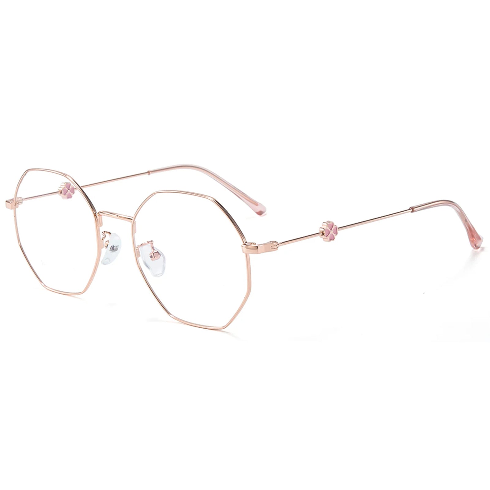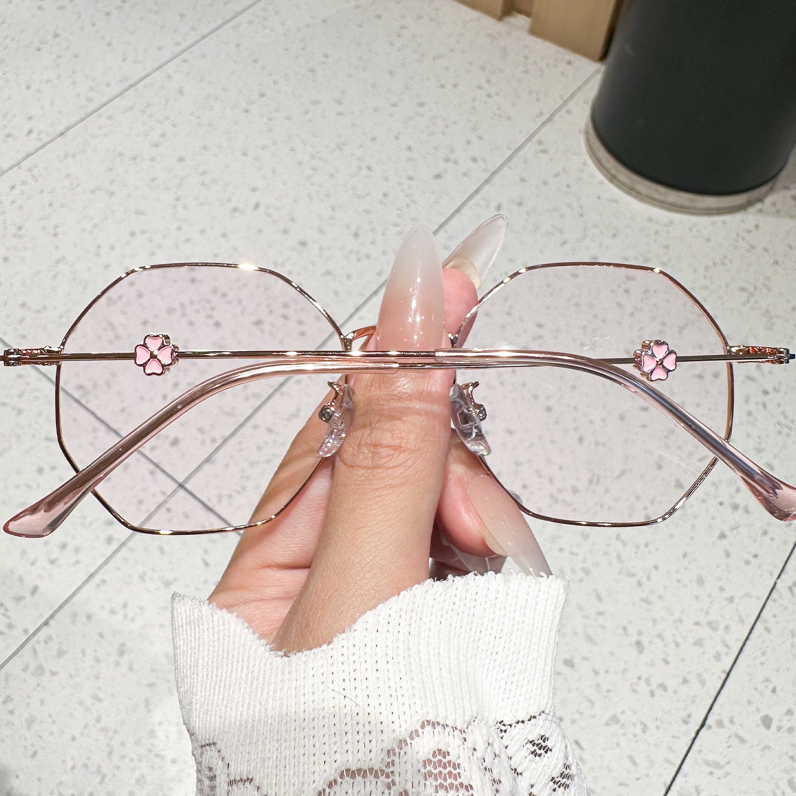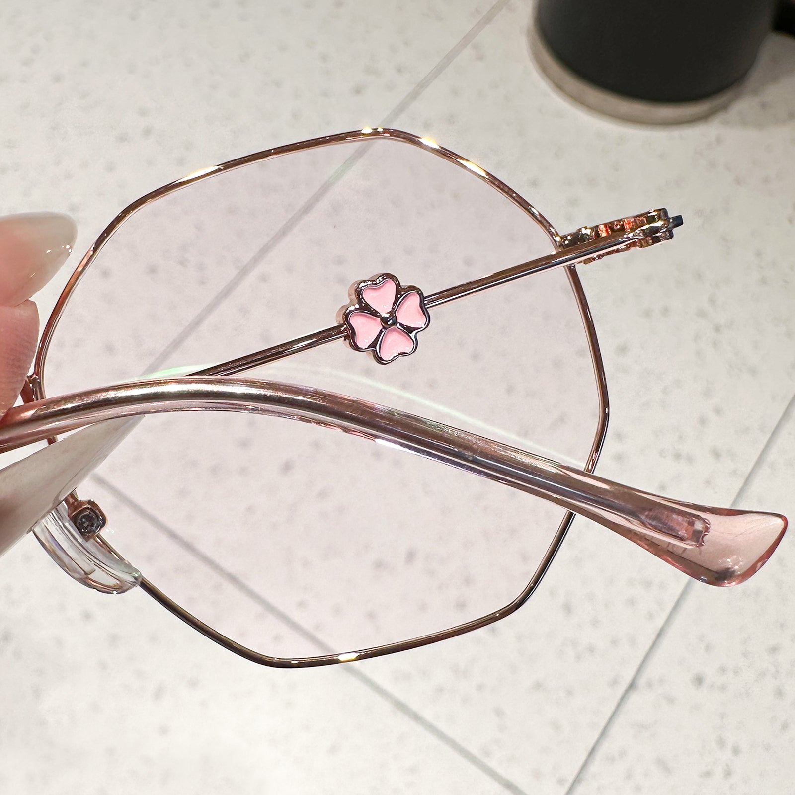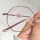 Fügen Sie Ihrem Look einen Hauch von Glück mit unseren geometrischen Brillen mit einem skurrilen Vierblattklee-Design auf den Schläfen hinzu. Diese Brille mischt moderne geometrische Formen mit einem Symbol des Glücks und macht sie perfekt für diejenigen, die Stil und ein bisschen Charme in ihren Brillen suchen.