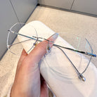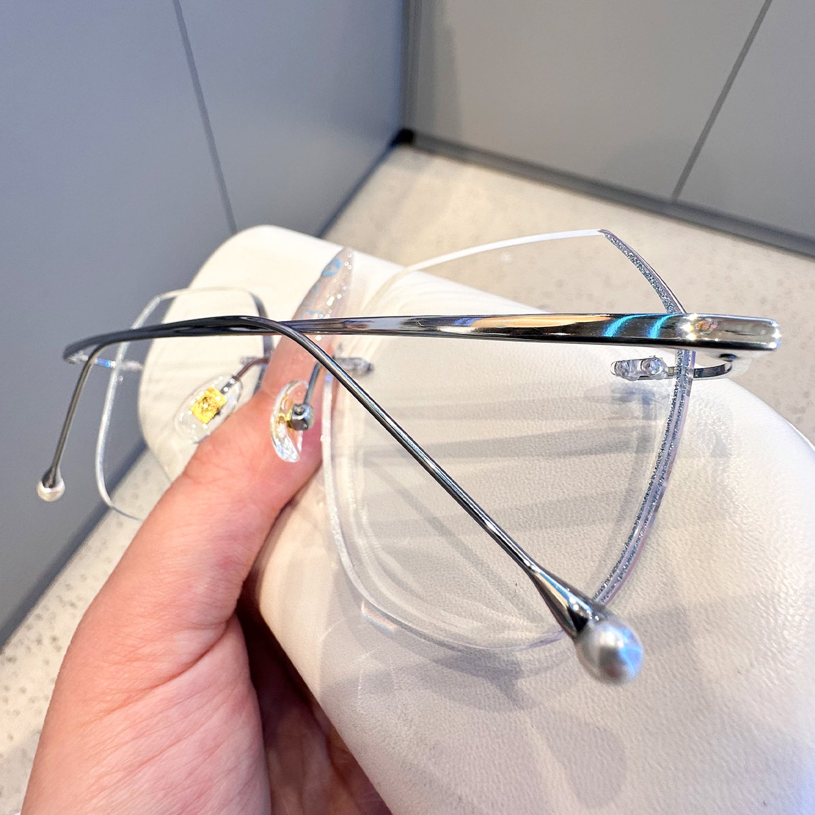 Rimless glasses with half-glitter Lenses and titanium temples adorned with elegant pearls. Elevate your look with these sophisticated rimless glasses. The lenses feature a striking half-glitter design, while the titanium temples are finished with opulent pearls at the tips, exuding timeless elegance and refined charm. A perfect blend of subtle sparkle and luxurious detail.