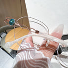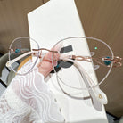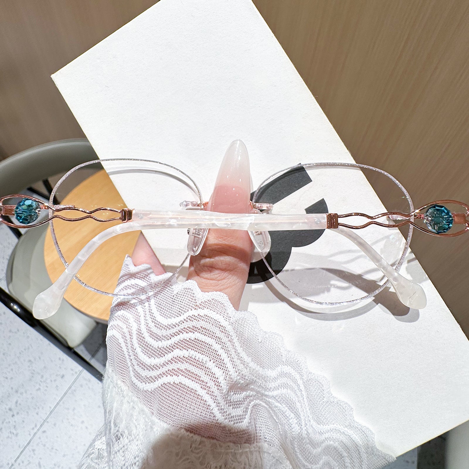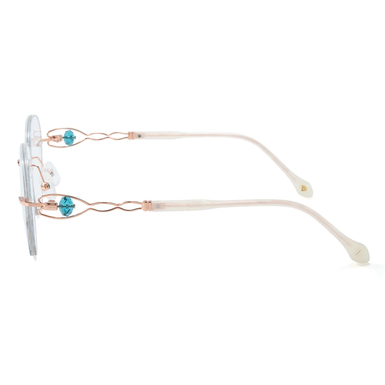 Eine Mischung aus Einfachheit und Eleganz. Das minimalistische Design zeigt beige Tempelarme und strahlt ein anmutiges Glühen von Mondlicht aus. Roségold Metall umarmen tiefe blaue Satelliten und wirft einen subtilen Heiligenschein, der Ihren Blick aufgibt.