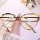 With a petite and lovely cat-eye shape, these metal eyeglasses bring a soft retro style to modern fashion. The smooth metal frame is sturdy yet light, giving you a cute and elegant appearance that stands out gently in any crowd.