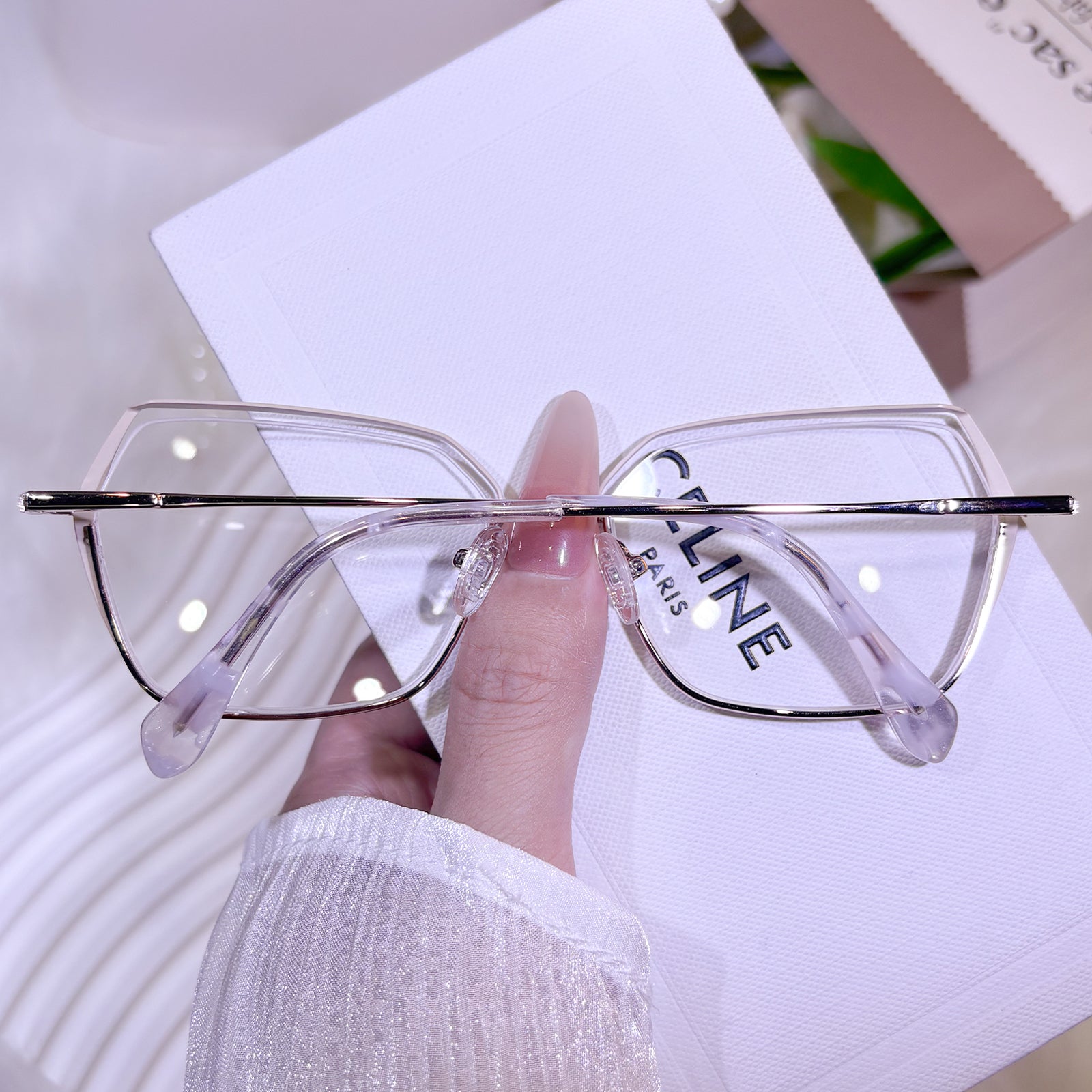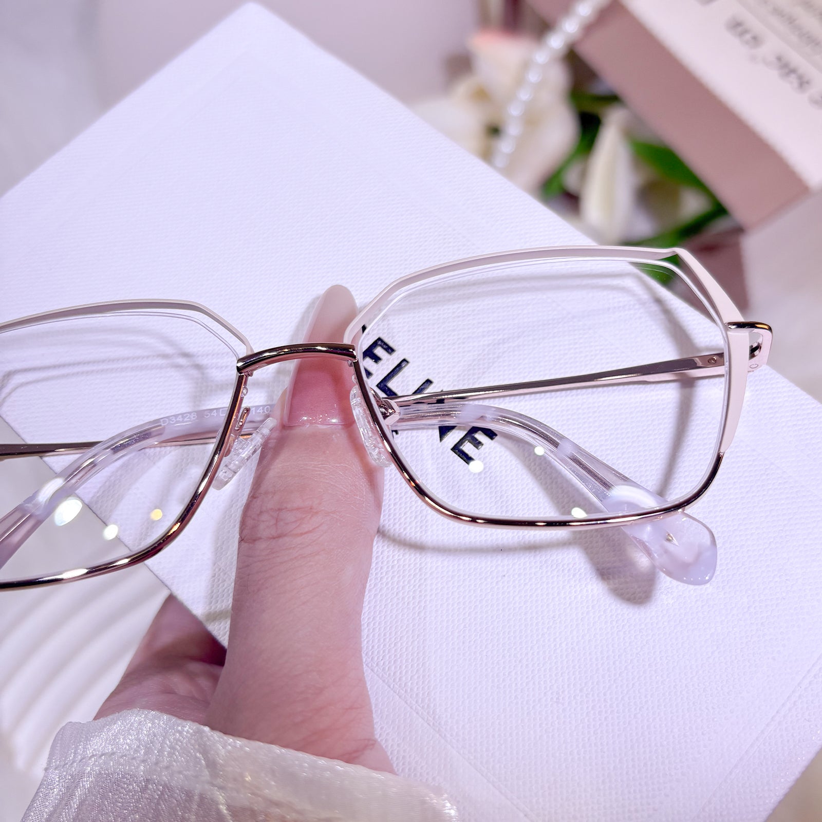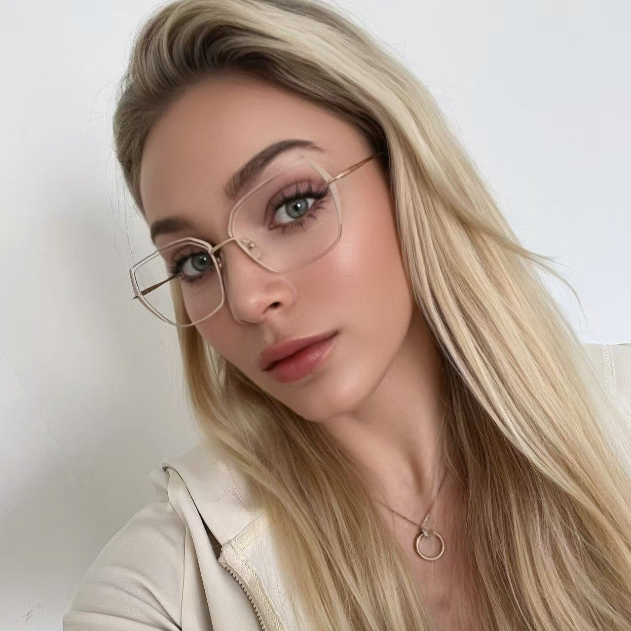 These beige geometric metal frame glasses blend minimalist design with refined elegance. The temples are smooth and luxurious, adding a subtle yet glamorous flair. Perfect for women who seek sophistication with a contemporary edge.