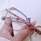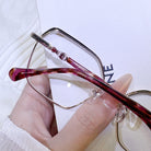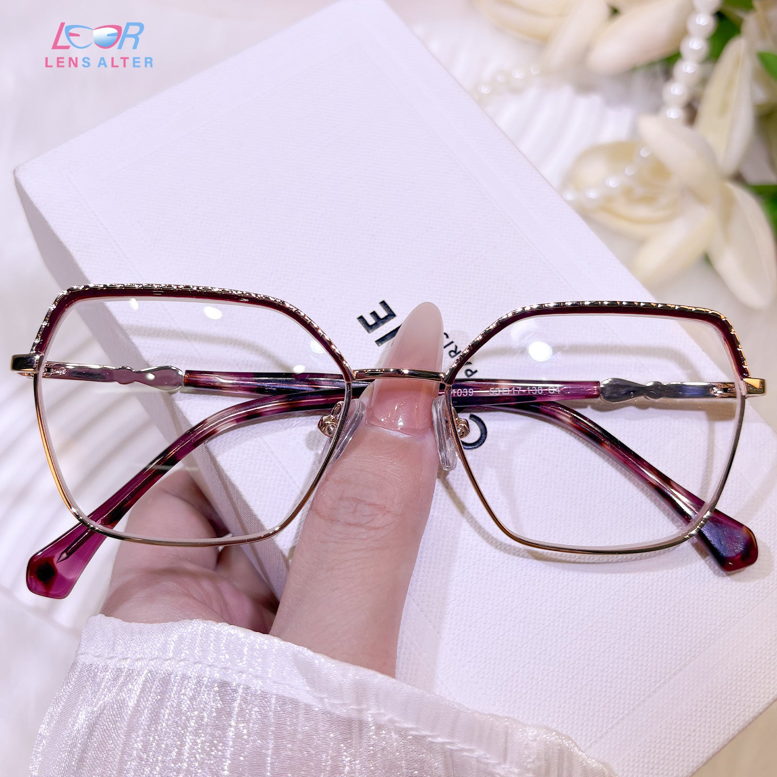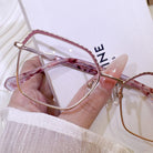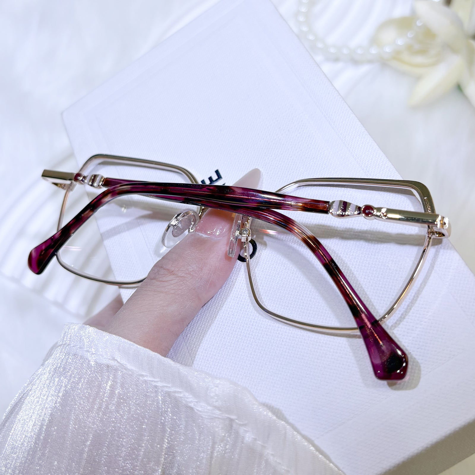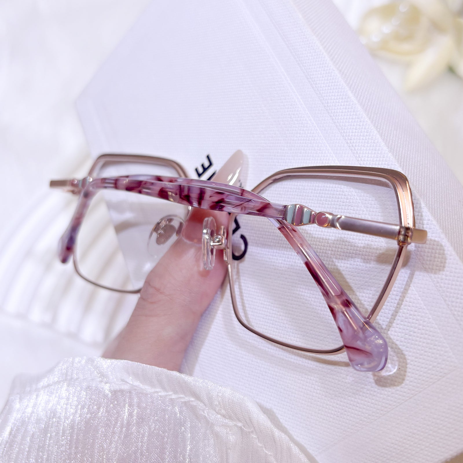These women’s geometric-frame metal glasses exude elegance and sophistication, with a refined shape and intricate detailing that add a touch of luxury to any look. Perfect for making a stylish and polished statement.