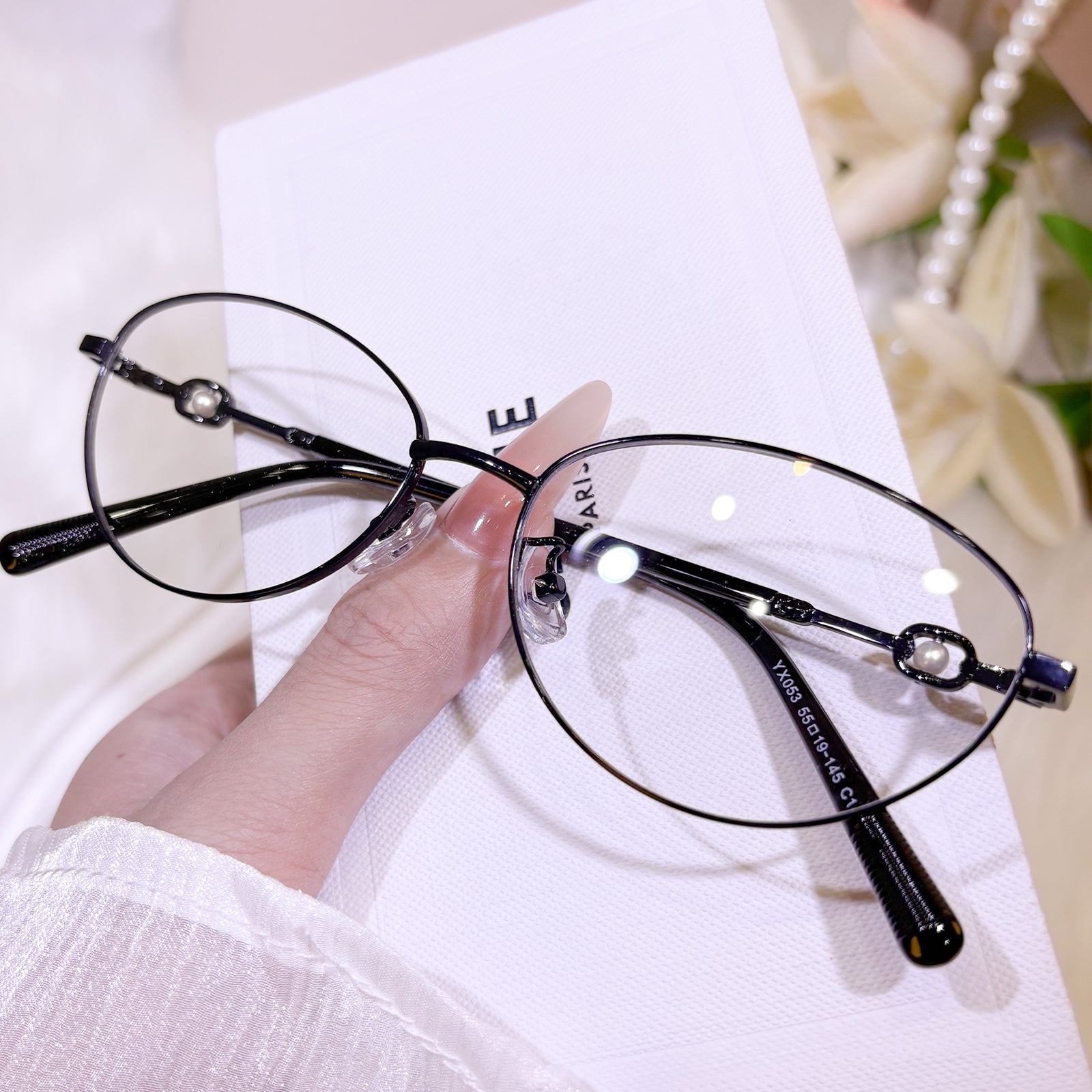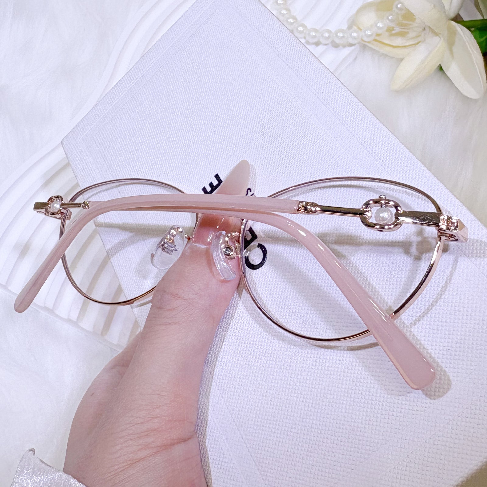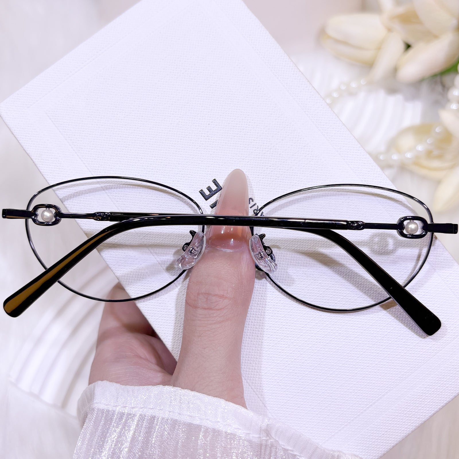 These ultra-feminine cat-eye metal glasses are adorably chic, with elegant pearl embellishments on the temples that add a touch of sophistication and charm to their playful silhouette.