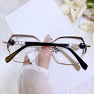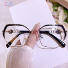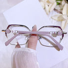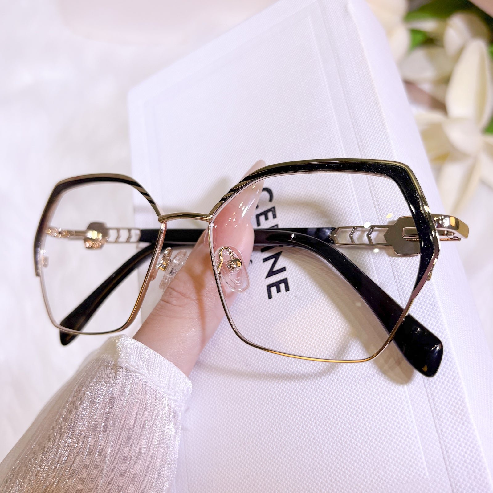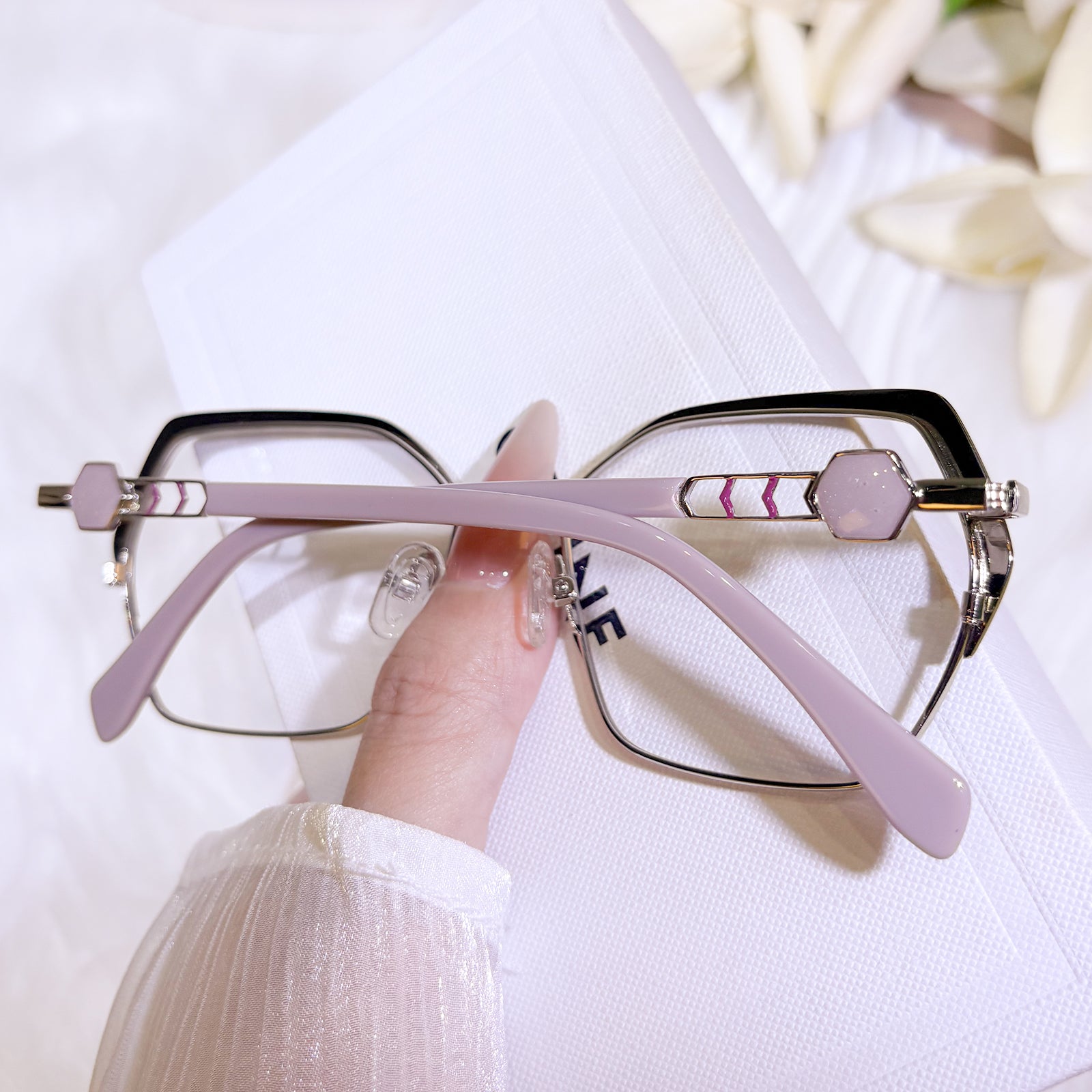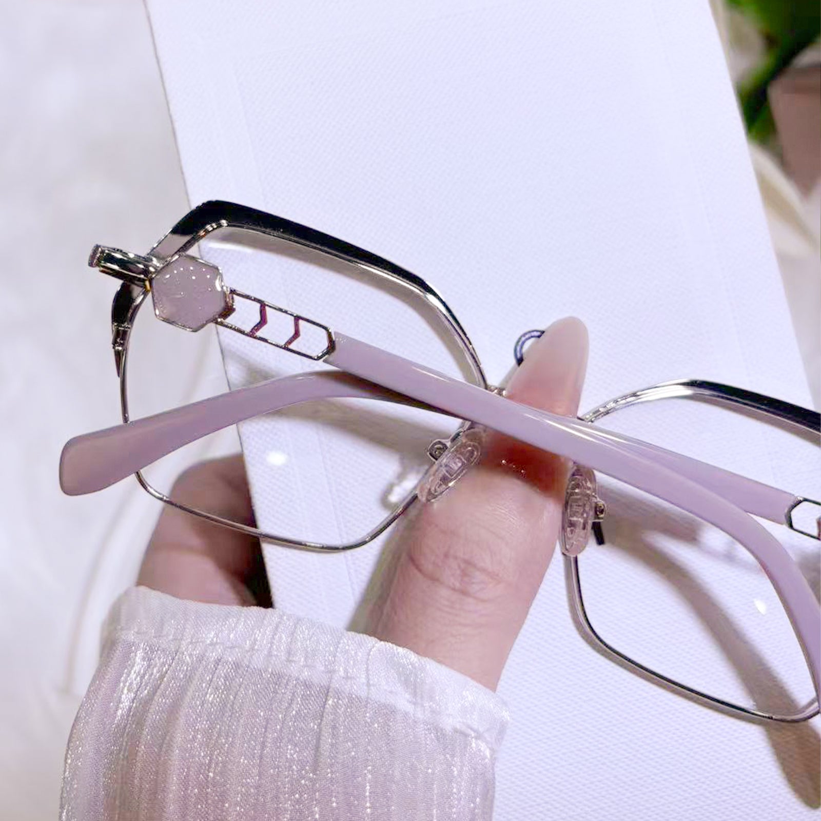With graceful geometry and ornate detailing, these women's metal frames artfully balance architectural elegance and luxurious decoration. The bold geometric shape commands attention with its modern structure, while the intricately adorned temples showcase refined craftsmanship—each detail echoing a sense of prestige. Exuding sophistication and contemporary glamour, these glasses are for those who appreciate artful design that is both striking and elegantly wearable.