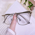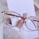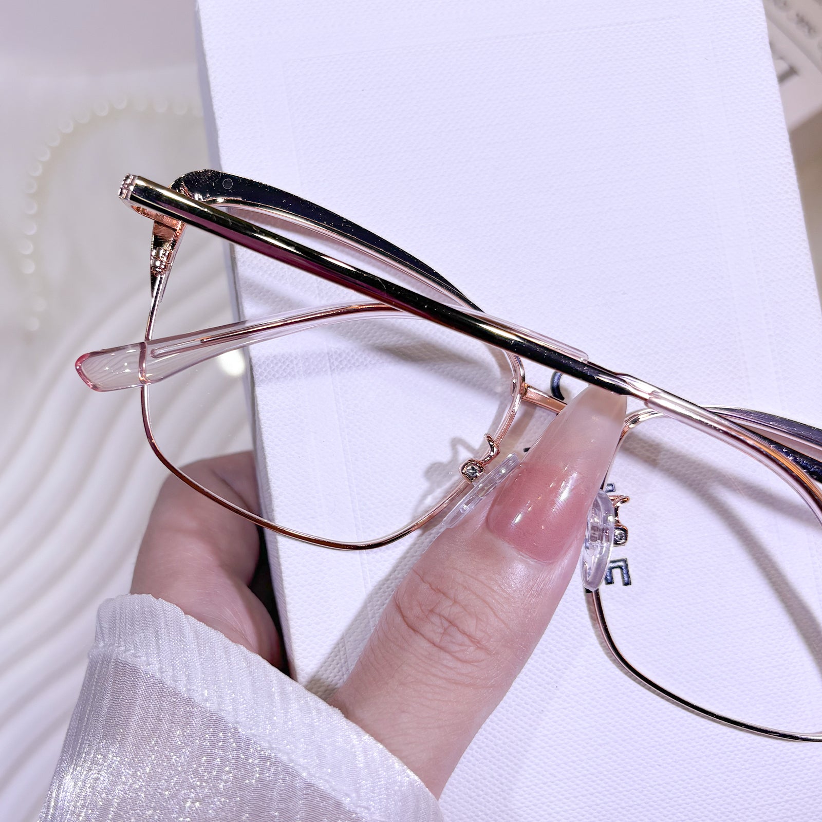 With a glossy rose gold finish and gently curved edges, this cat-eye metal frame captures both softness and sass.It’s a sweet accent that flatters round and oval faces beautifully.