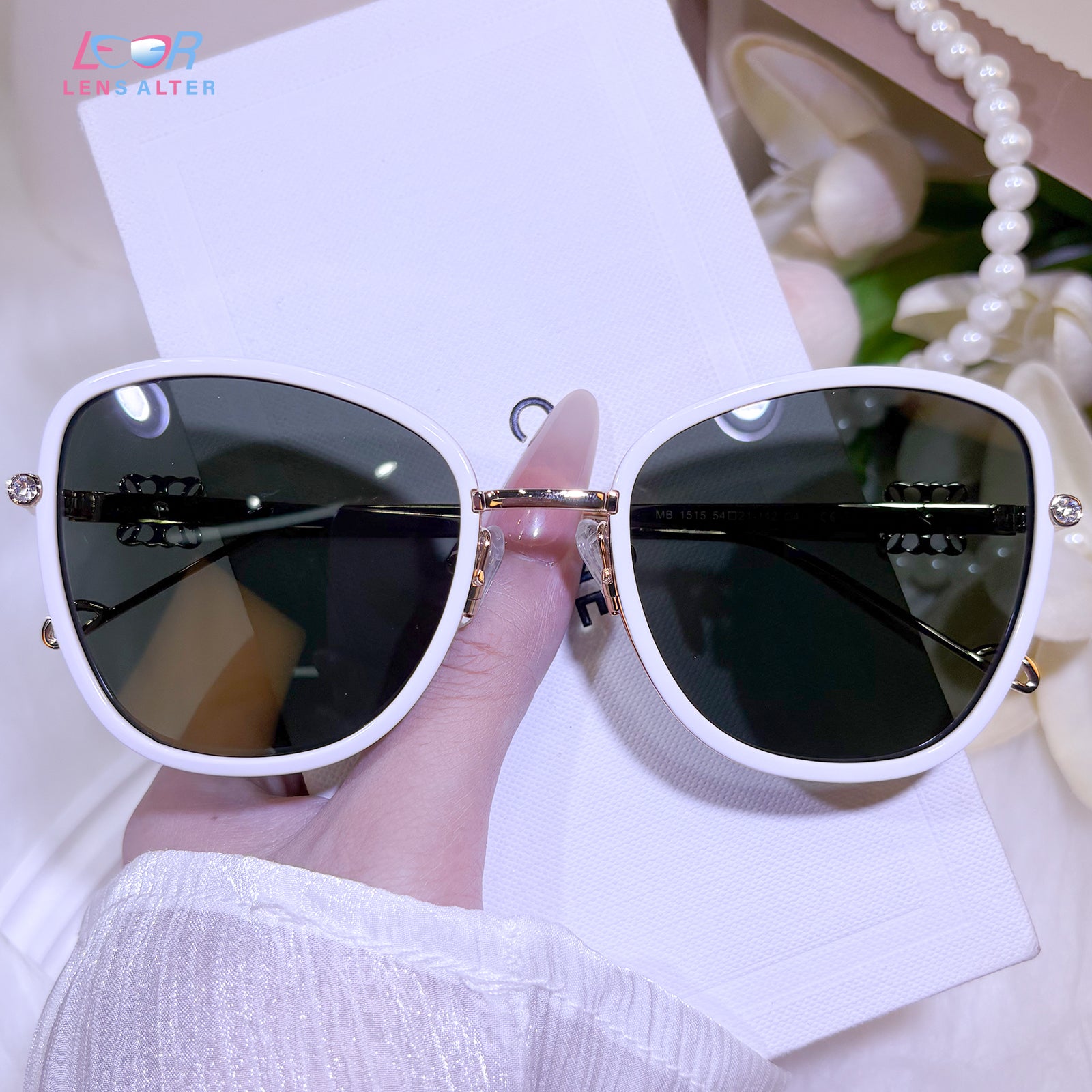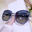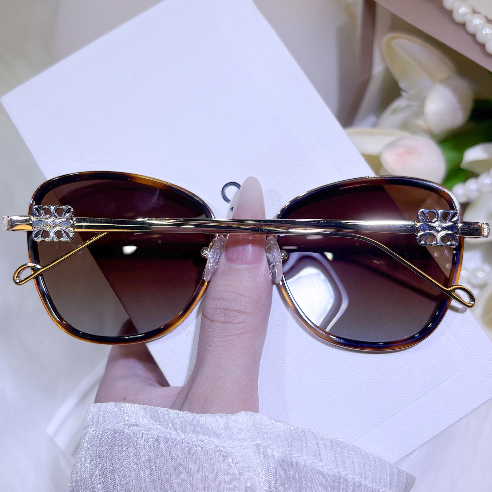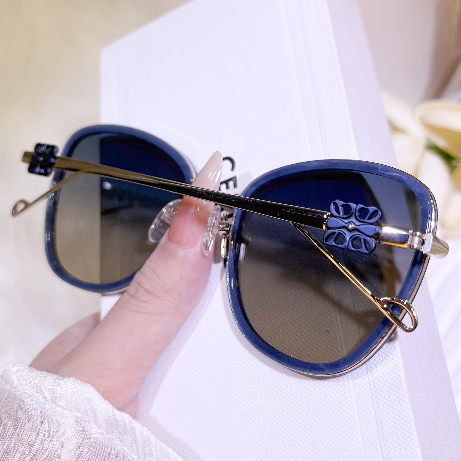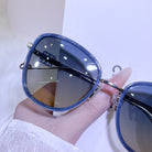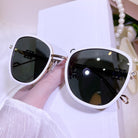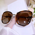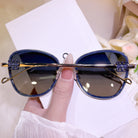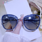 These sophisticated cat-eye sunglasses for women feature a minimalist TR frame adorned with an artful blend of leopard print, crisp white, and serene blue. The lightweight design presents a look that is both playfully expressive and elegantly refined. A perfect choice for those who seek eyewear that balances untamed charm with timeless sophistication.