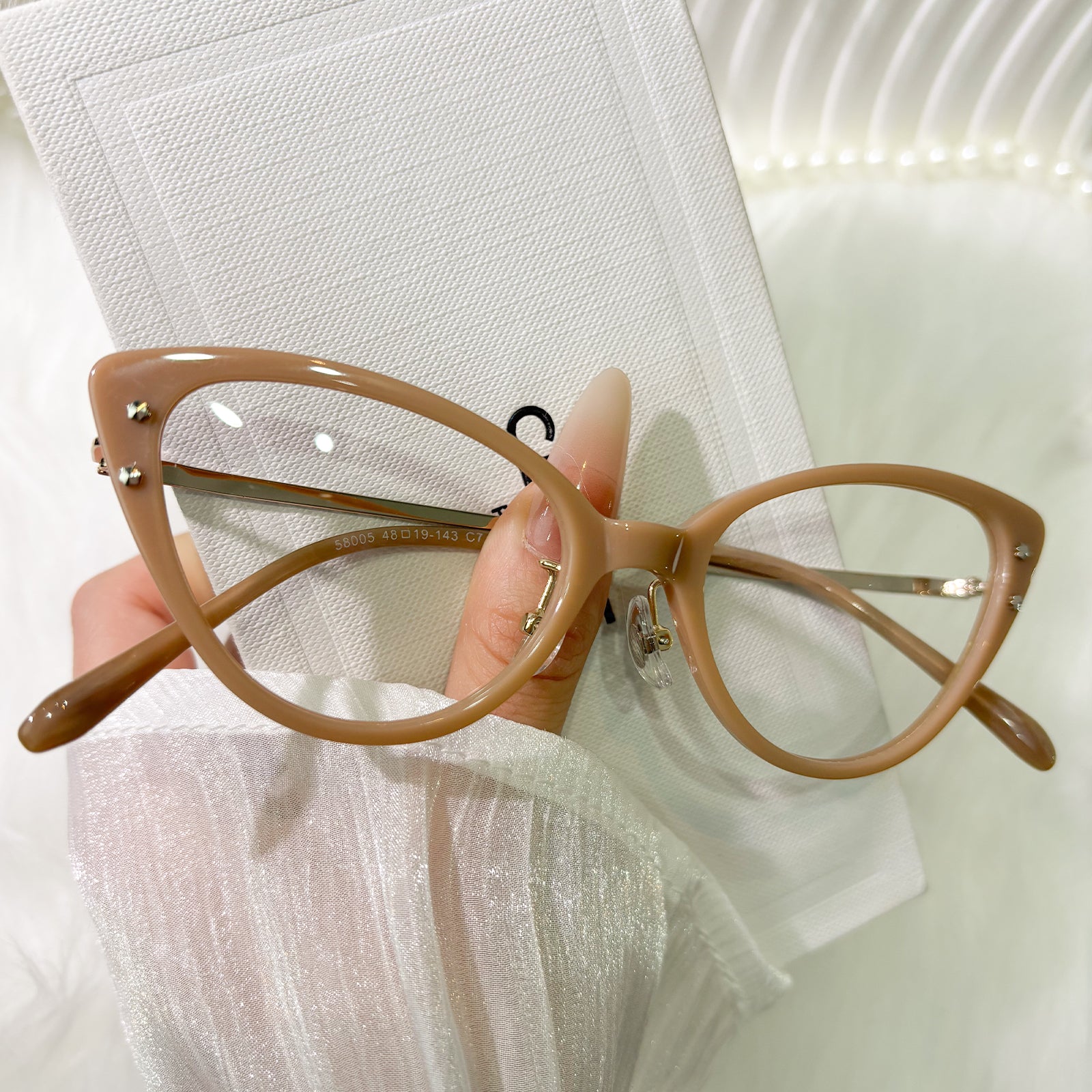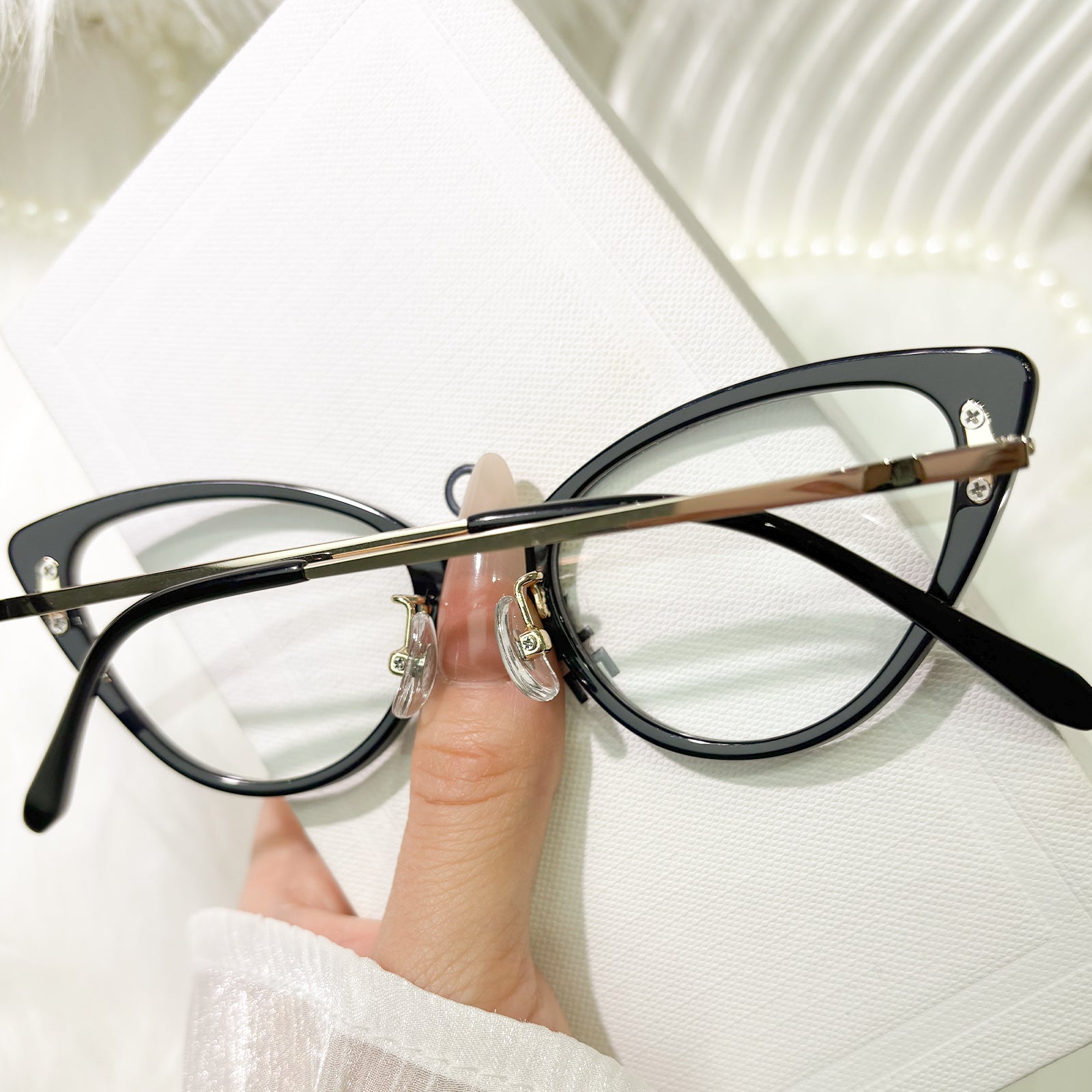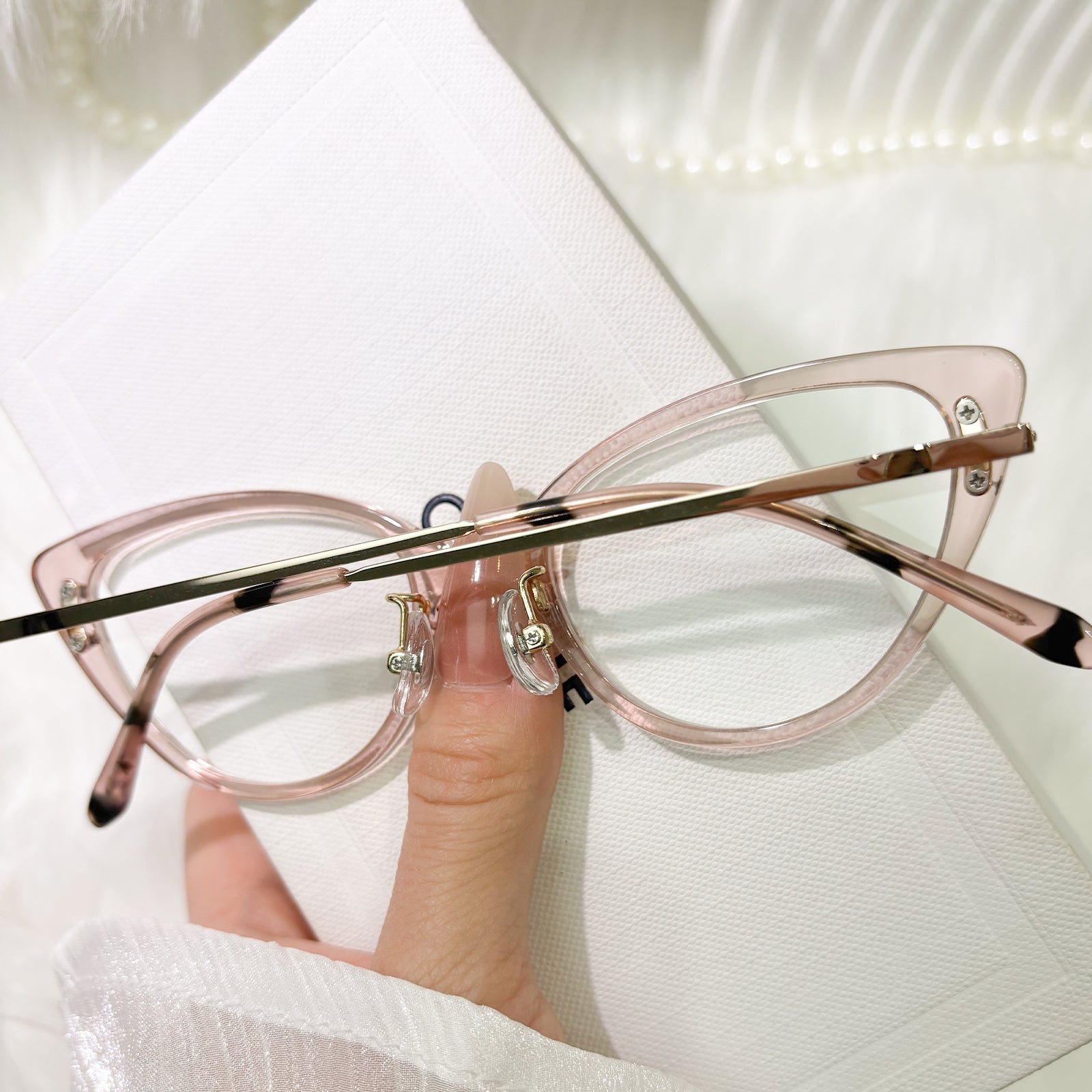 Designed to reflect your inner light, these cat-eye glasses blend delicate sparkle with versatile color storytelling. Black whispers timeless maturity, translucent pink evokes gentle romance, and vivid pink sings playful charm—each inviting you to shine in your own distinct way.