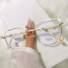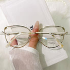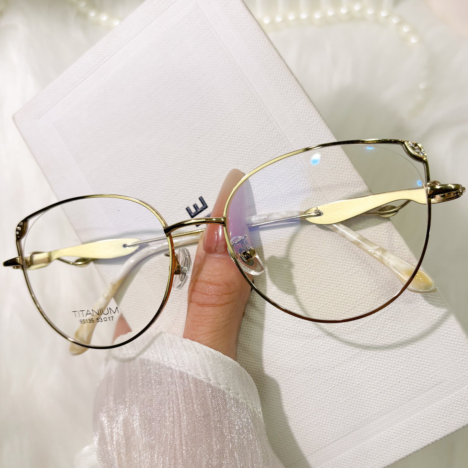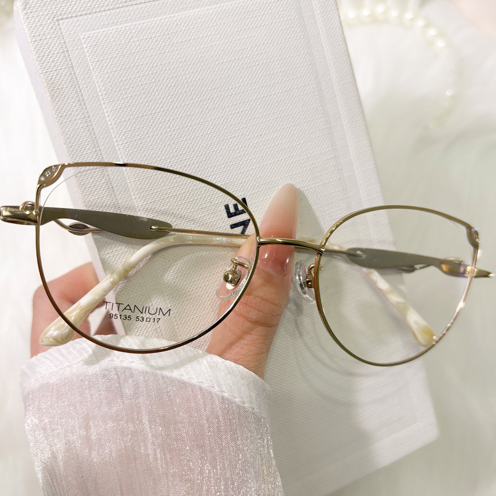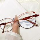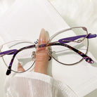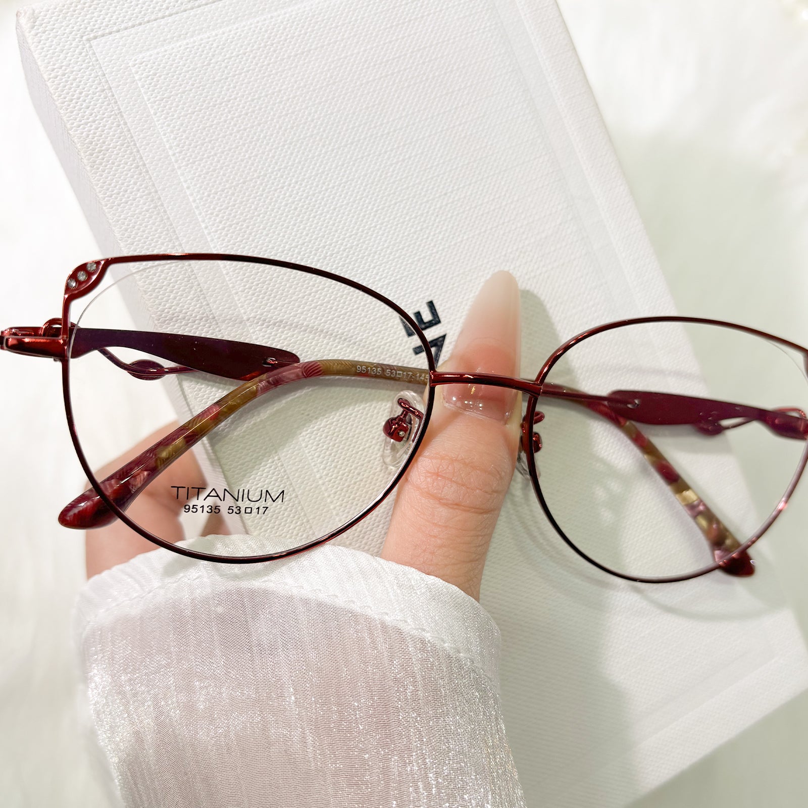 A bold fusion of light and pigment, this titanium cat-eye frame blends glacial white, electric red, and royal purple in a seamless, eye-catching flow. The lightweight metal construction ensures all-day brilliance, while the gradient transitions like a sunset over a modern skyline—designed for the color-confident visionary.