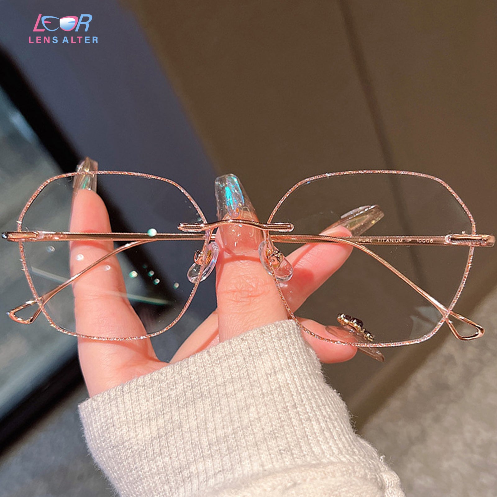 Dieses Paar randloser Brille ist raffiniert und modern, mit einem raffinierten Look. Die Goldmetall -Tempel und die Brücke verleihen ihm einen edlen Look, während das randlose Design nur seinen raffinierten und vielseitigen Stil betont. Diese Brille ist einfach und doch luxuriös und passt zu jedem Outfit und betont die Gesichtsfunktionen des Trägers, ohne zu überheblich zu sein.