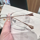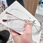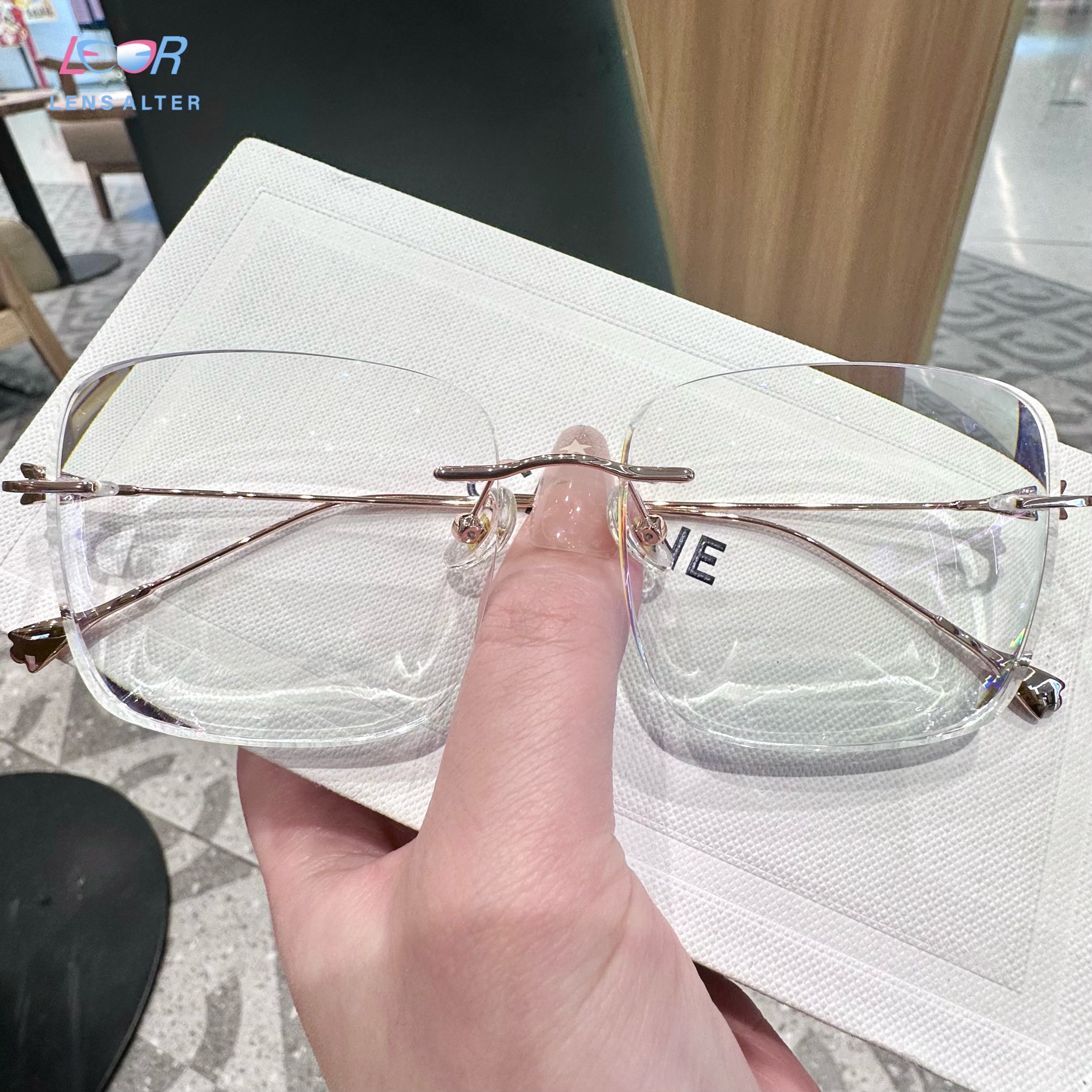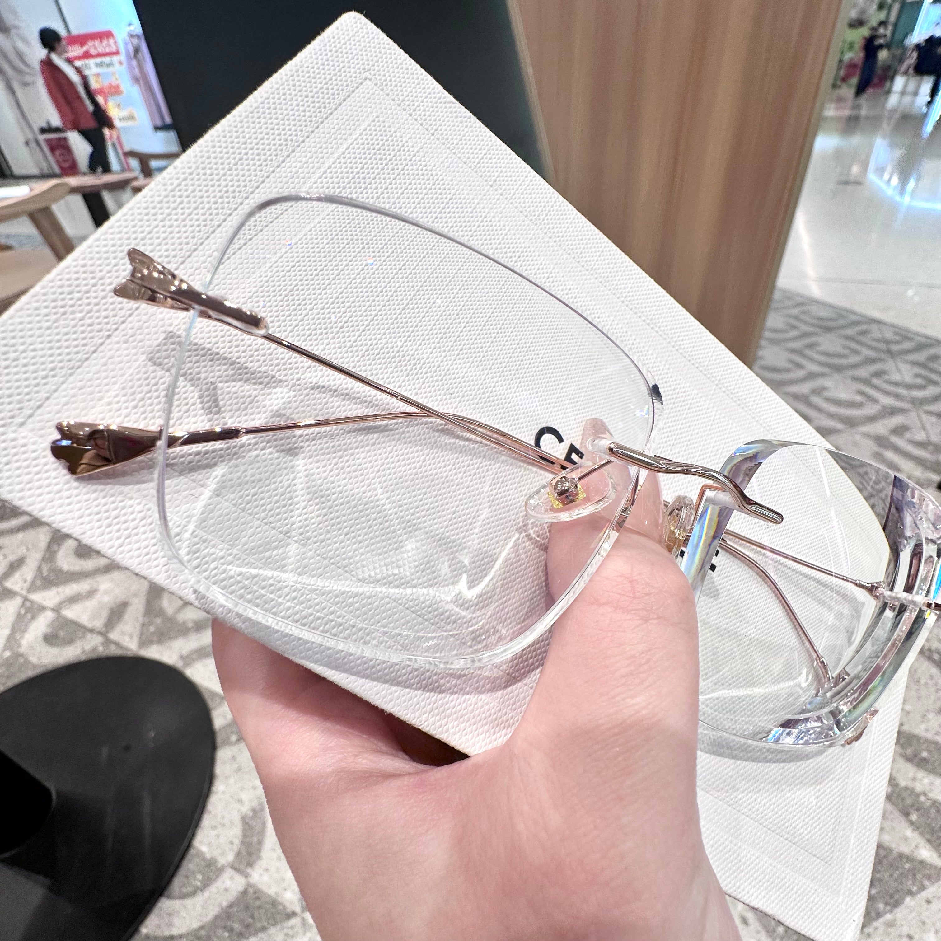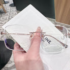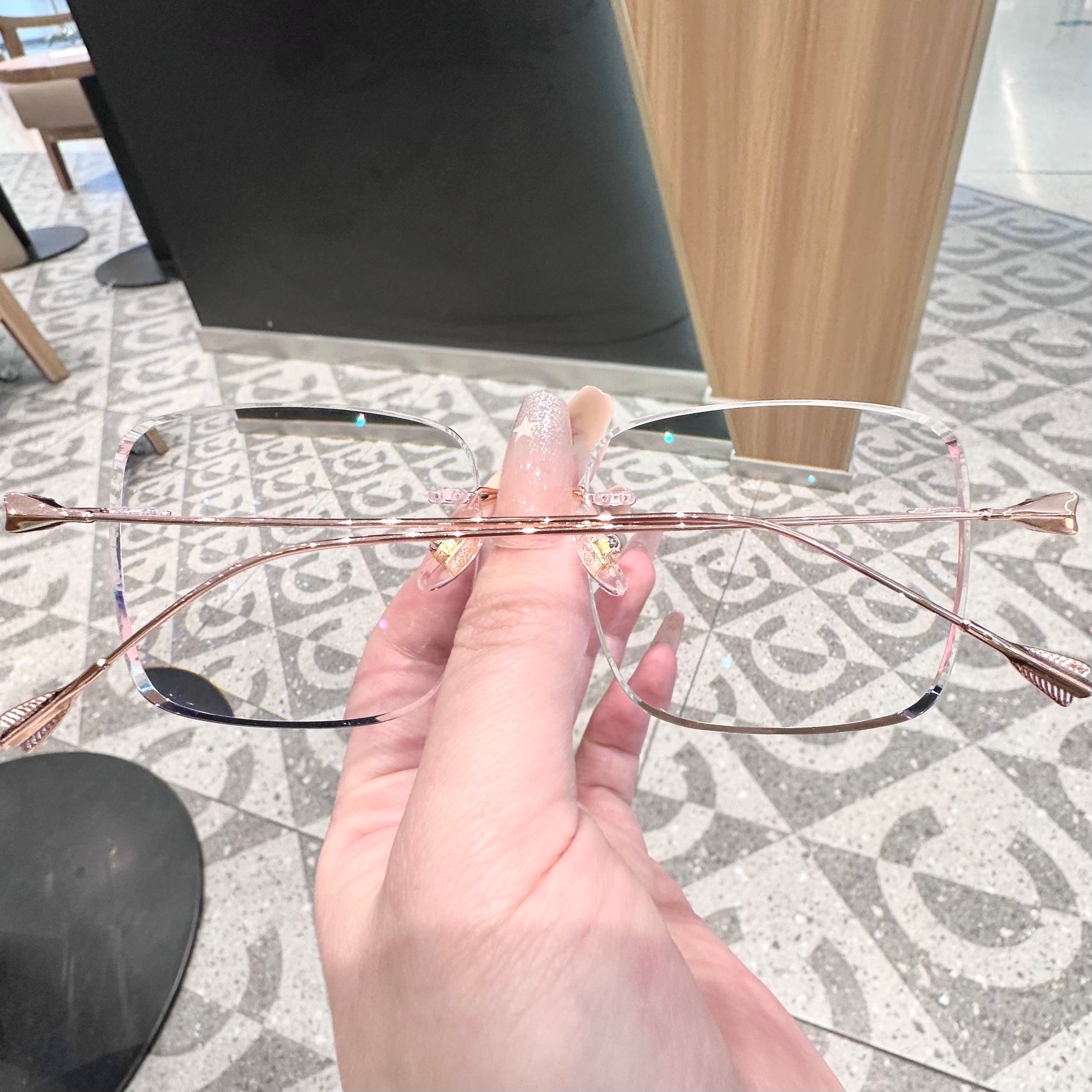 Square rimless glasses exude sophistication with their minimalist design and stunning rose gold temples. The arrow-shaped detail on the temples adds a bold, yet refined touch—aimed to capture attention and steal hearts.