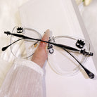 | Exclusive Design | Inspired by the adorable Badtz-Maru aesthetic, these kawaii rimless glasses bring together playful charm and stylish attitude in the cutest way possible. The rimless silhouette keeps the look light and dreamy, while the cool little star accents on the temples add a fun, edgy touch.