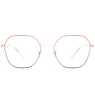 Objektive, die auf der einen Seite rosa und auf der anderen Seite grün sind. Die schicken und modischen Tempel fügen eine zusätzliche Stilebene hinzu, die diese Brille zum perfekten Accessoire für diejenigen macht, die gerne auffallen. Umfassen Sie Ihre mutige, trendige Seite mit diesem lebendigen und zeitgenössischen Brillen.