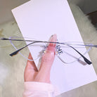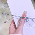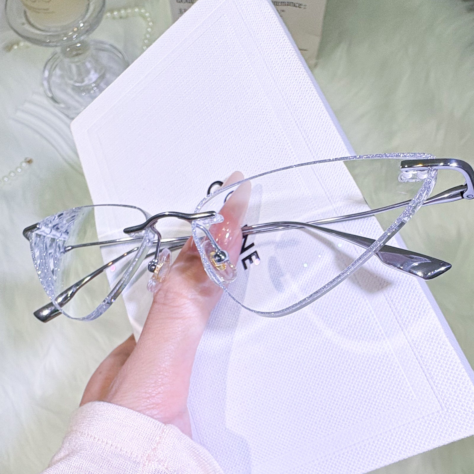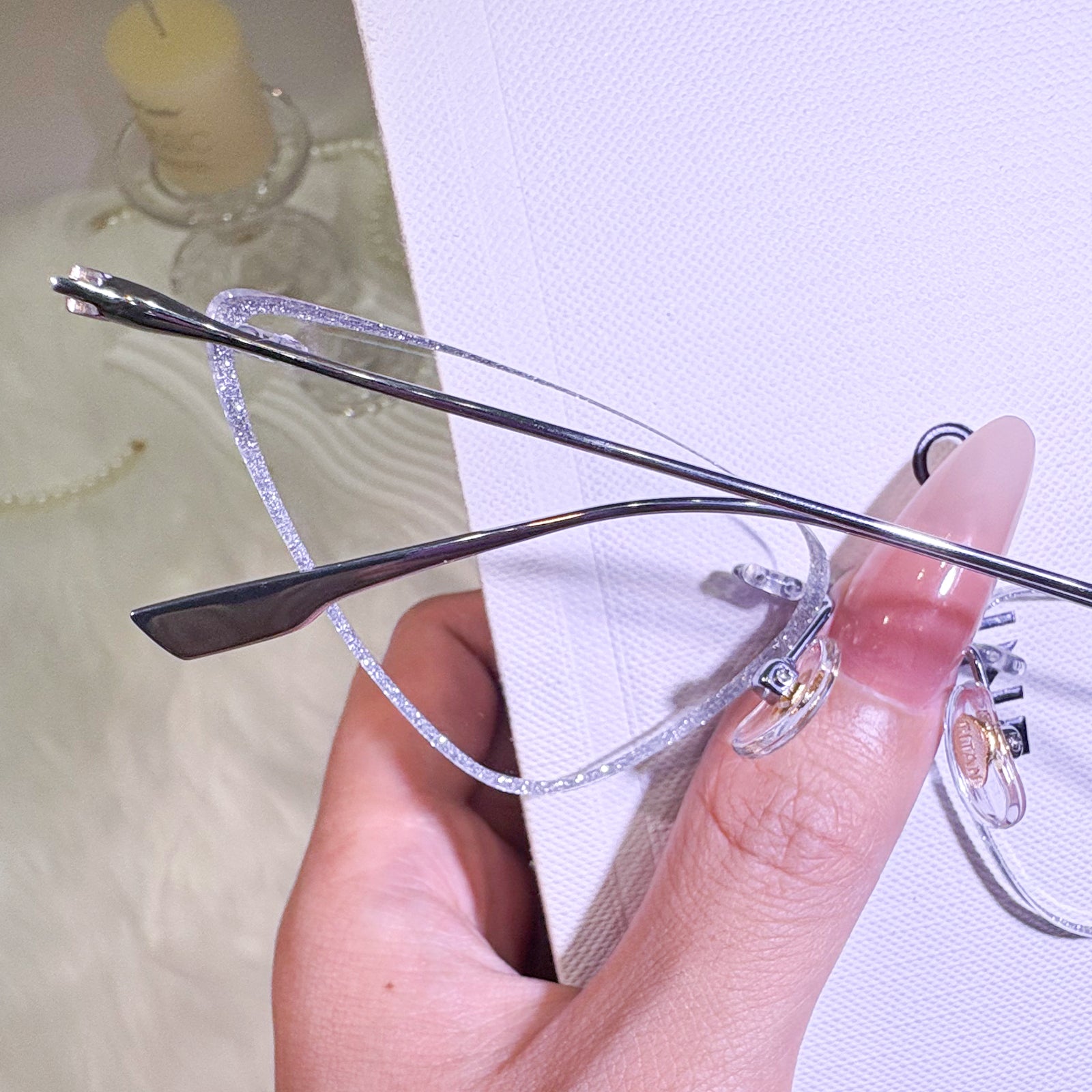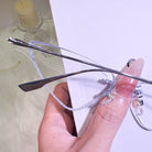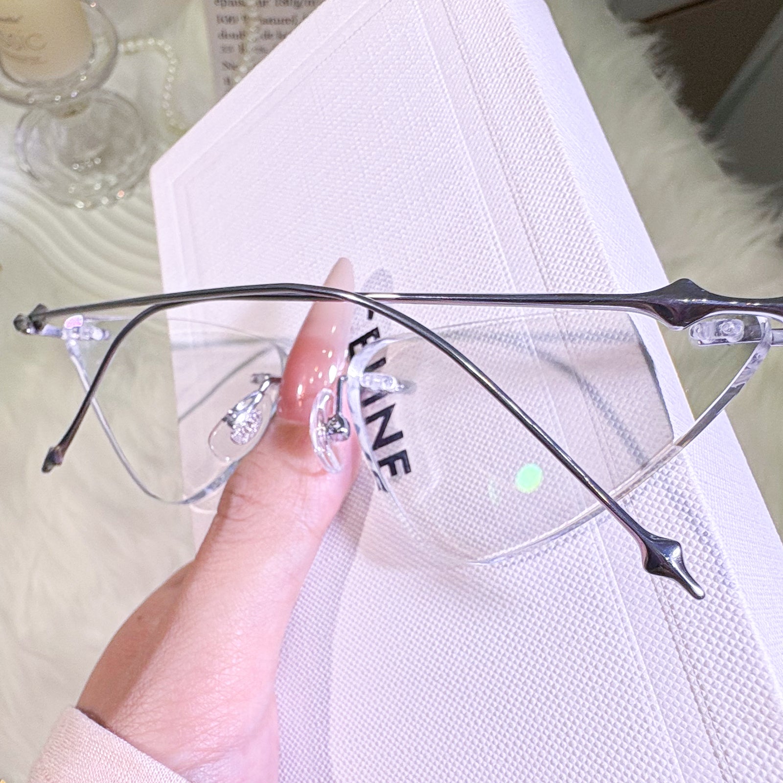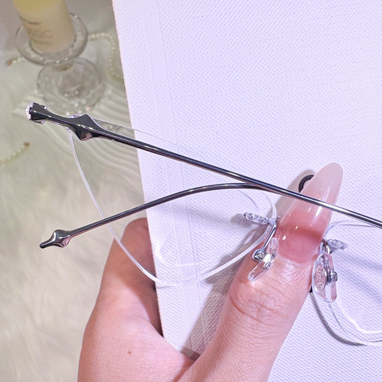 | Exlusive Design | This striking pair of triangle-shaped rimless glasses radiates a futuristic, high-end vibe with its sleek all-silver design. The titanium temples are ultra-lightweight, providing both comfort and durability. Bold yet elegant, these glasses are perfect for girls who love to express their individuality with confidence and style. Whether paired with minimalist outfits or edgy ensembles, they make a powerful statement of modern sophistication.