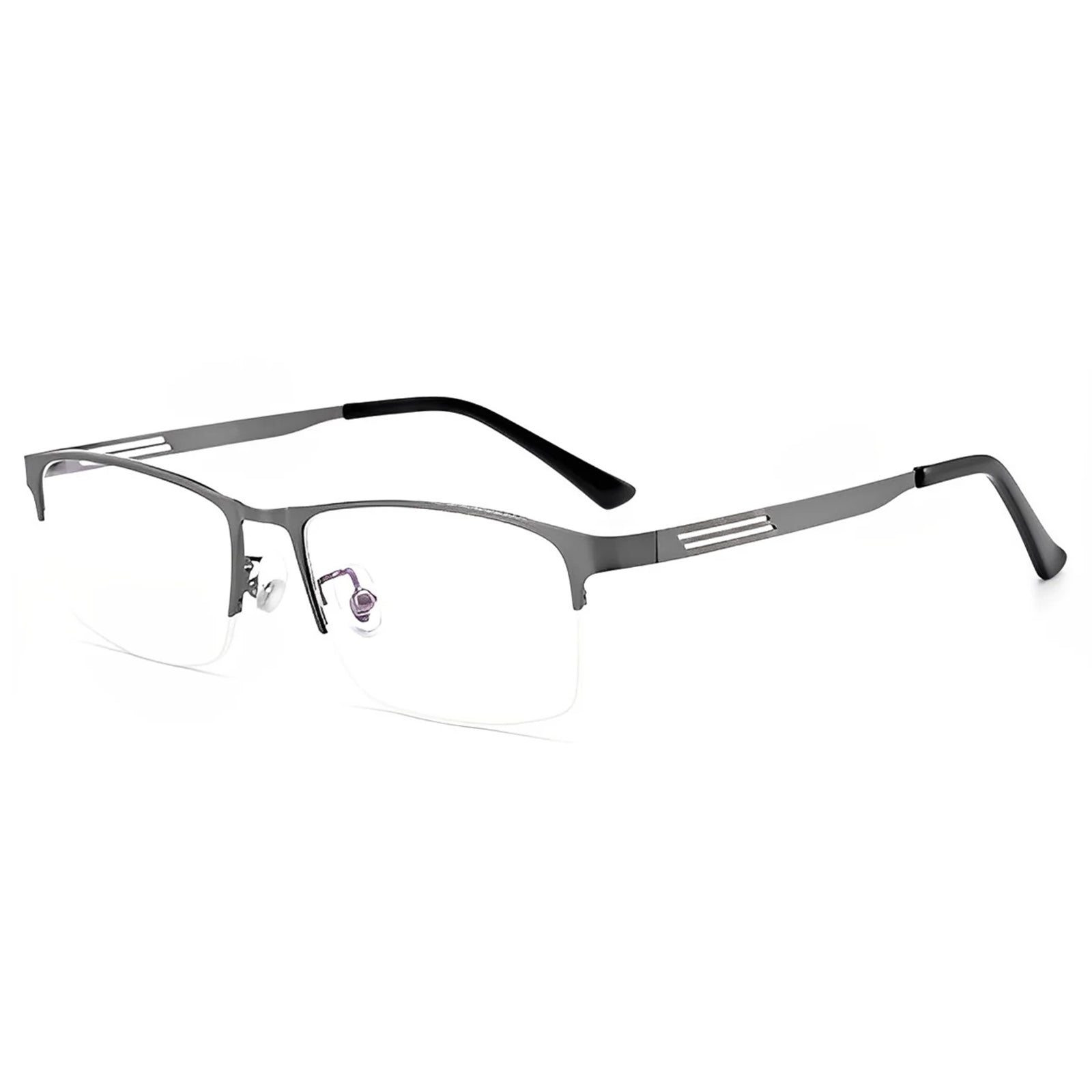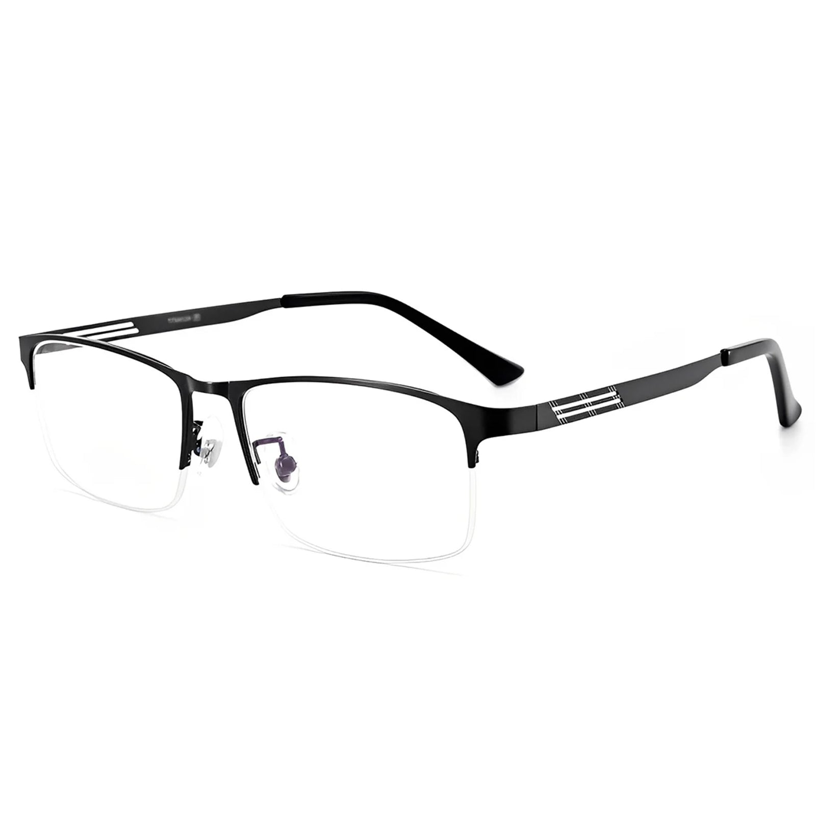 Ein eleganter und minimalistischer Halbrom-Winkelrahmen, der für einen mühelos coolen Look ausgelegt ist. Die eleganten Linien des Rahmens bieten eine moderne Note, während sein leichtes Design den ganzen Tag über den Komfort sorgt. Einfacher Einfachheit mit Stil.