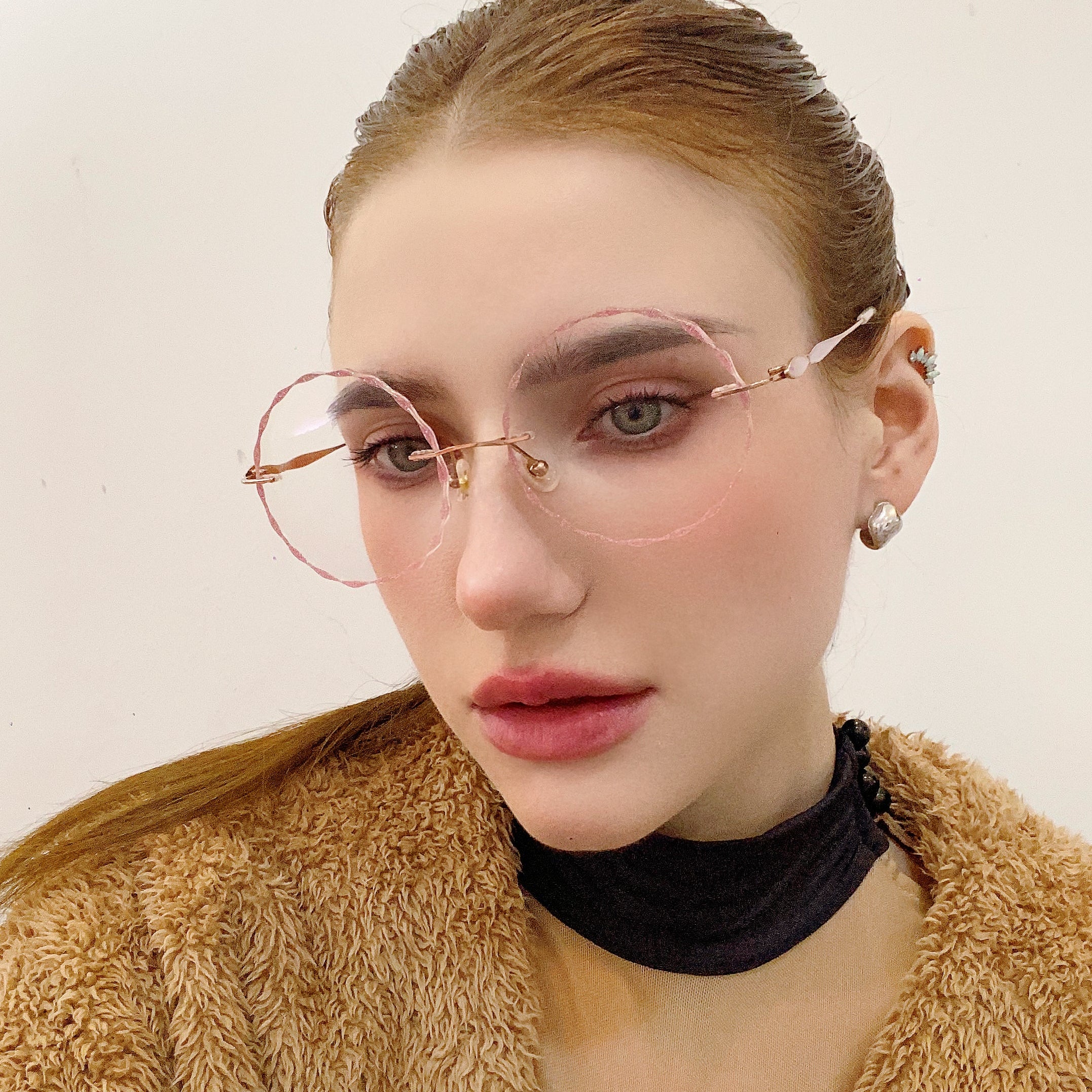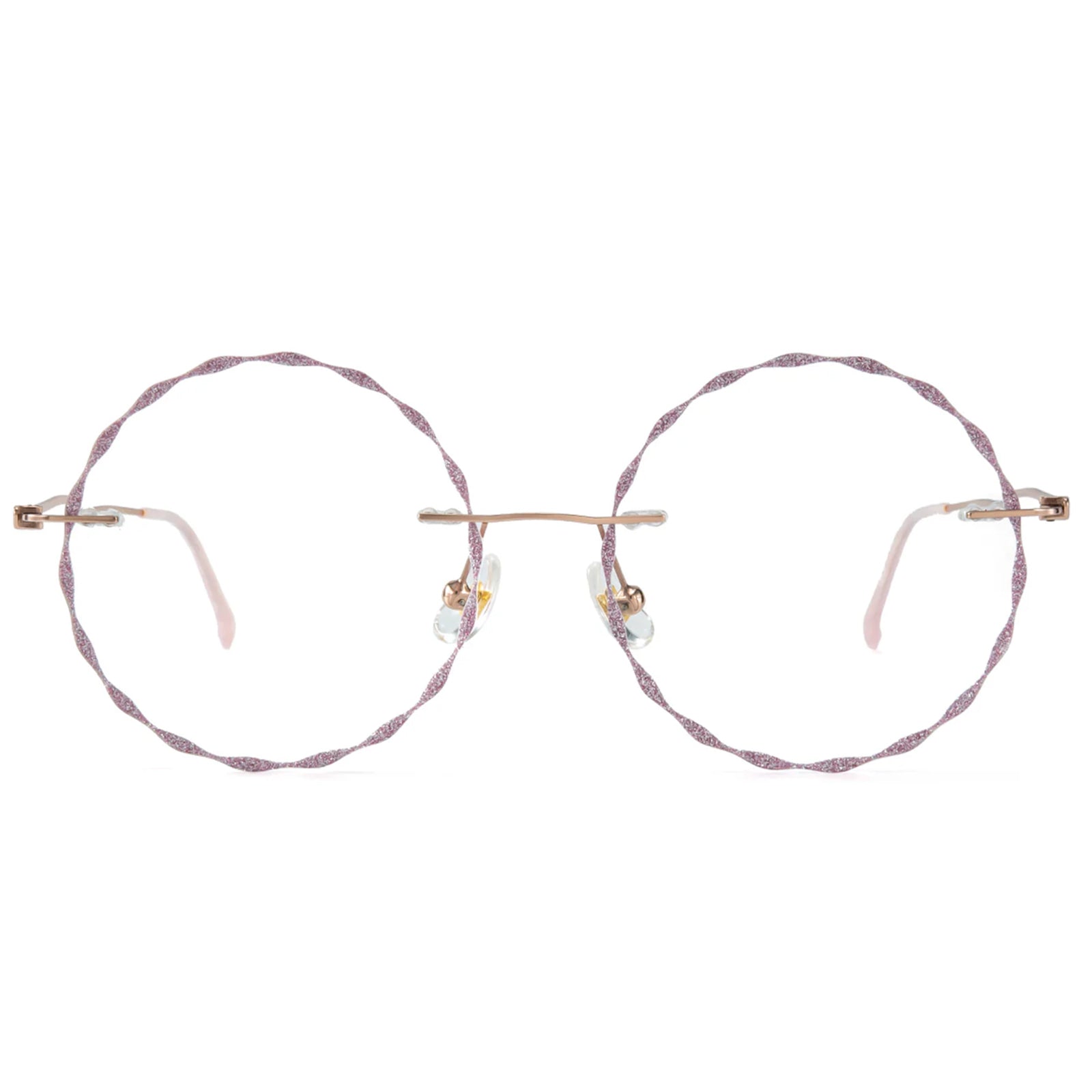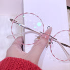 Diese rundlosen runden Brillen verfügen über einen zarten rosa Metallrahmen und charmante spitzenförmige Linsen, die sich perfekt für junge Frauen eignen, die es lieben, ihre spielerische und weibliche Seite auszudrücken. Leicht und stilvoll und Nora verleiht jedem Outfit eine einzigartige Note, die Sie mühelos hervorhebt.
