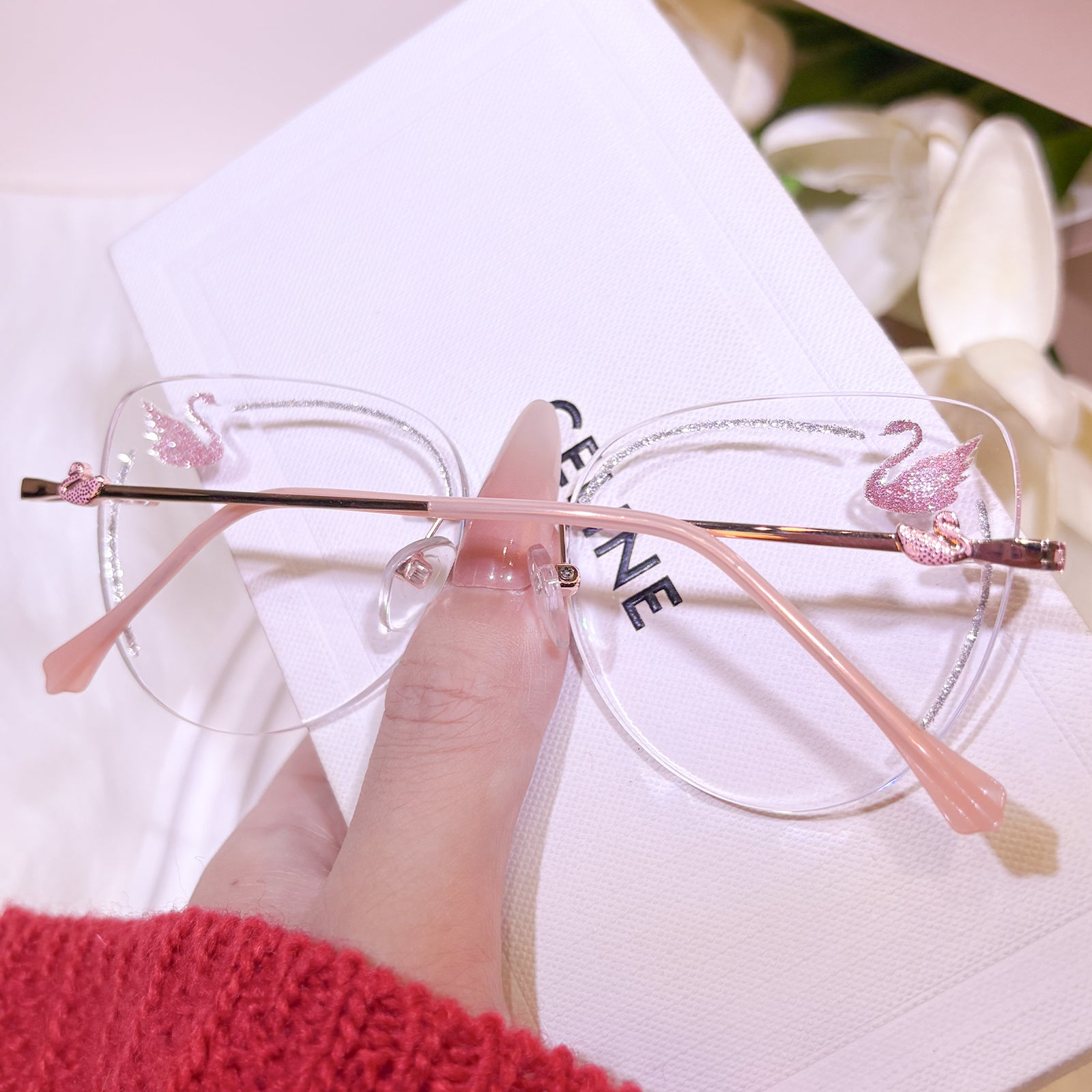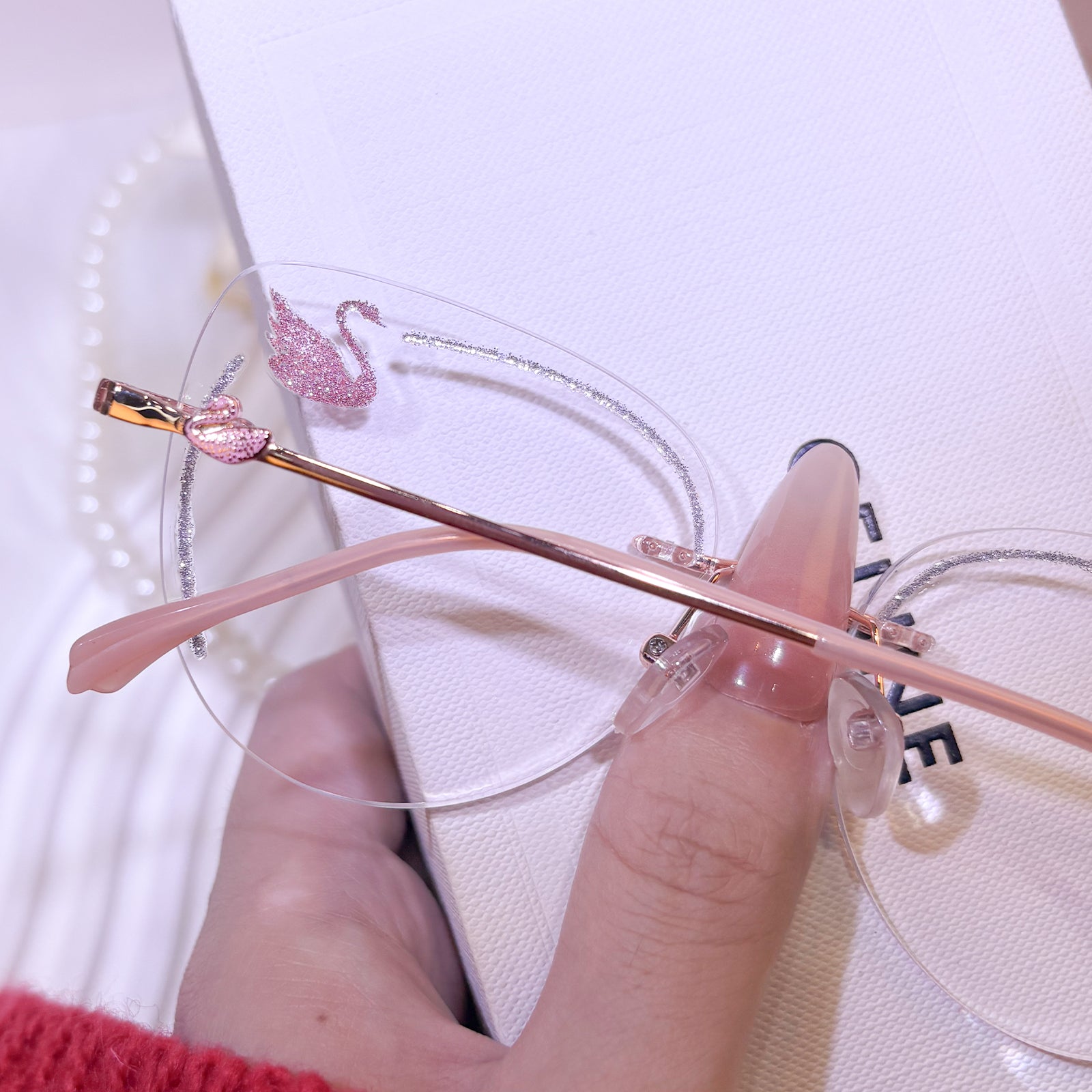 | Exclusive Design | These delicately minimalist glasses for women feature a weightless metal frame in soft blush pink, where the frameless design draws full attention to the graceful swan motif adorning each temple tip. The elegant swan appears in mid-flight, its form sculpted with poetic precision against the warm-toned metal, creating a look that balances ethereal beauty with structured refinement. For the modern woman who carries both strength and grace in her every gesture.