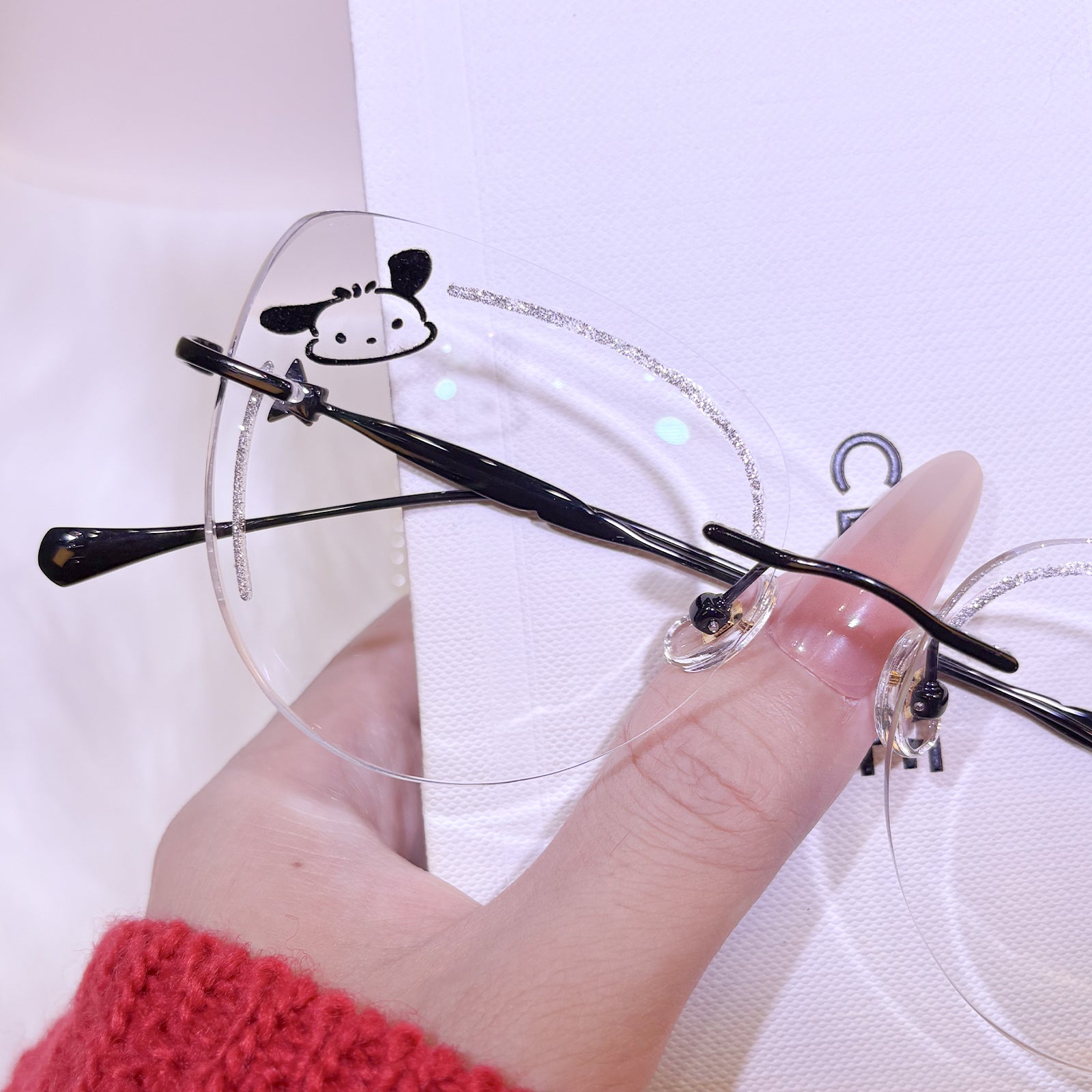 | Exclusive Design | Get ready to melt hearts with these irresistibly cute black rimless glasses inspired by Pochacco! The playful design features delicate star details on the temples, adding a touch of sparkle to your everyday look. Lightweight, fun, and full of charm — perfect for anyone who loves a sweet, stylish vibe!