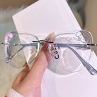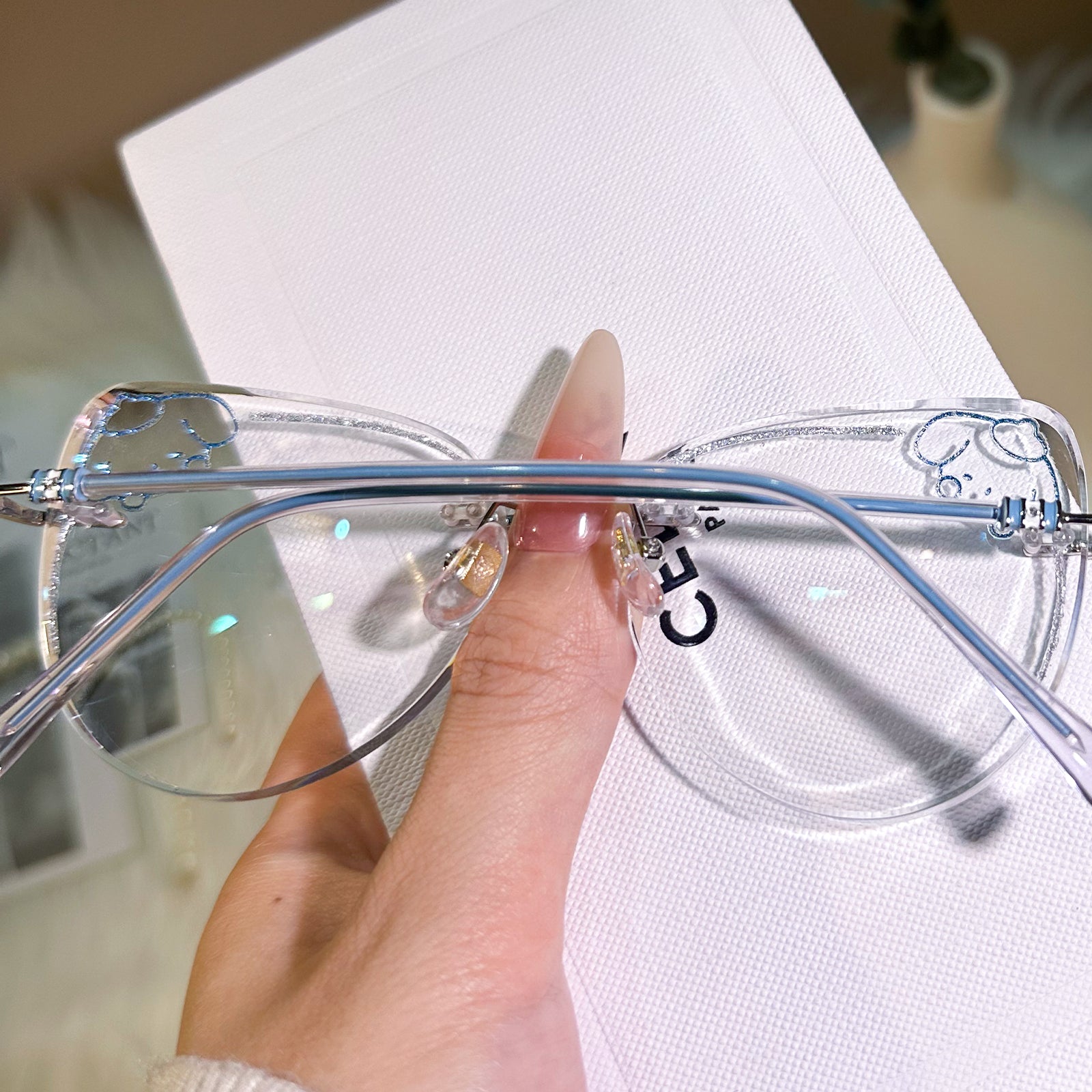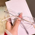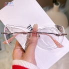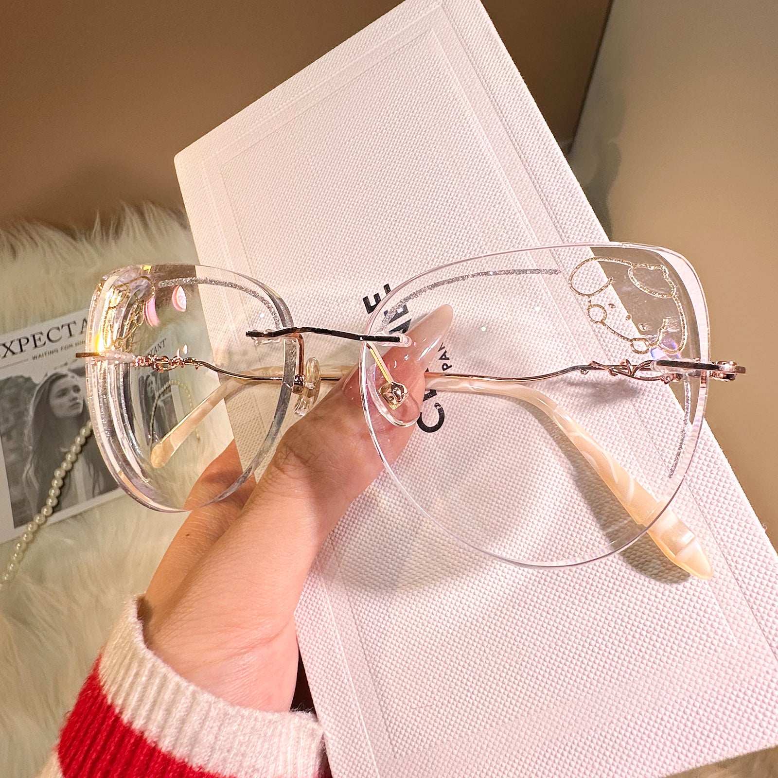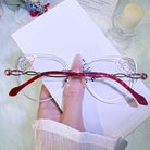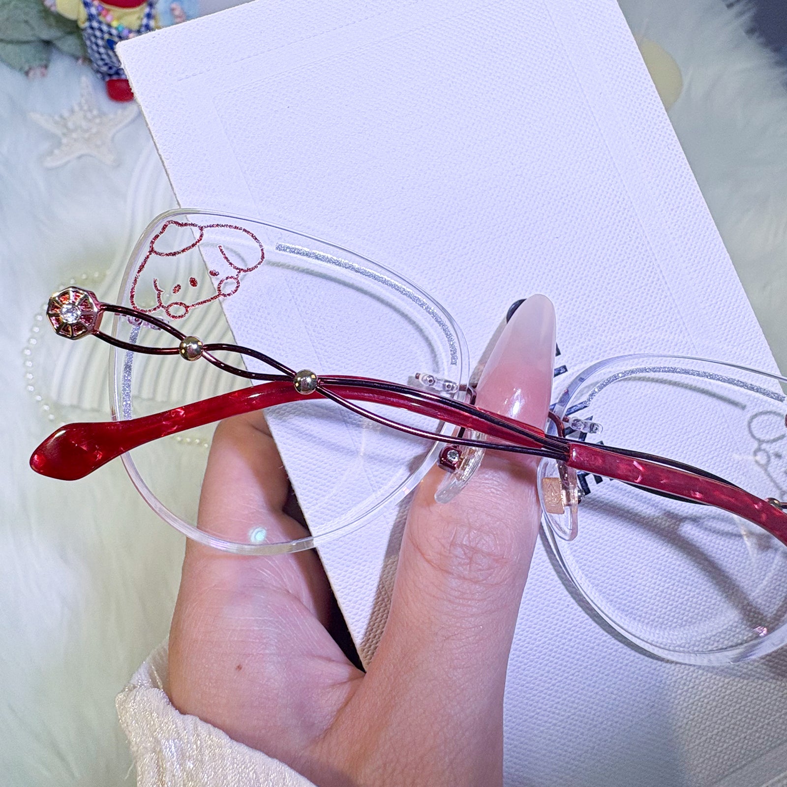 Channel the irresistibly cute vibes of Pompompurin with these charming rimless glasses. Featuring a delightful yellow puppy design and sparkling glitter accents on the lenses, this pair is a perfect blend of whimsy and style. A must-have accessory for lovers of all things kawaii!